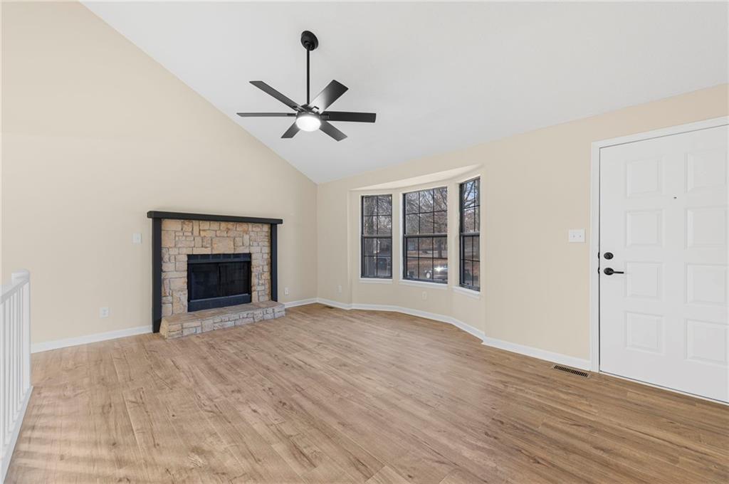 Amazing opportunity for one level living or an investment property! This home is located just minutes from the shops and restaurants at the Legends! Completely updated and move-in ready! This home features all new interior paint, updated hardware and lighting, granite countertops, and new appliances. Bathrooms have been refreshed with higher sinks, a taller toilet, and brand-new refinished tubs. New carpet and new luxury vinyl plank flooring run throughout the home. The basement offers a non-conforming 4th bedroom, a REC room, and a full bathroom with tile flooring and a walk-in closet, perfect for added living space. Additional highlights include a cozy wood-burning fireplace, a huge storage area and washer and dryer hookups in the unfinished space. Interior cabinets have been newly painted. Major exterior upgrades include a new roof and gutters installed in 2025. A rare find that's move in ready!