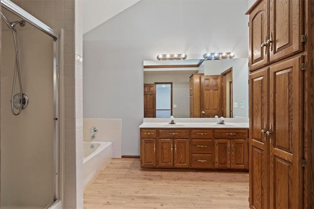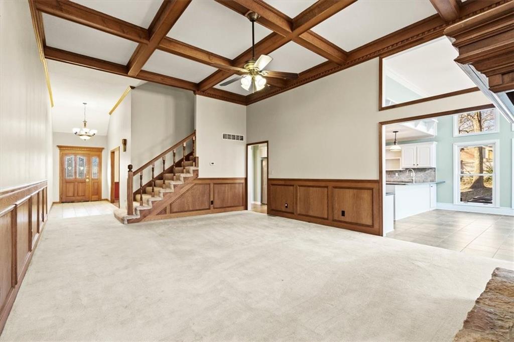 Welcome to the delightful blend of country living right in the heart of the city! Nestled in a peaceful neighborhood, this home offers the perfect mix of privacy and a connection to nature. As you step inside, you’ll immediately feel at home in the spacious great room, featuring a stunning floor-to-ceiling stone fireplace and a beautifully coffered ceiling adorned with charming millwork. The heart of the home is the kitchen, filled with natural light and lined with ample cabinetry, creating a warm and inviting space for cooking and gathering with friends and family. Plus, there's a handy walk-in pantry and the option for a second laundry hook-up right on the main floor! You’ll love the primary suite, conveniently located on the main floor, complete with a cozy walk-in closet and a relaxing jacuzzi bathtub. And don't miss the lovely sitting room, a perfect spot to unwind with a good book. The bonus room is an exciting feature that offers so many possibilities! Whether you want a game room, a crafting space, a dance/yoga/art studio, or a home gym, this room can accommodate it all! Head upstairs to find three generously sized bedrooms that share a full bathroom with both a shower and a bathtub—perfect for those busy mornings! Downstairs, enjoy an additional living area that can serve as a recreational space or even as guest quarters, complete with a non-conforming bedroom and a full bathroom. The lower driveway leads to a two-car garage, a storage closet, and a workshop equipped with a utility sink for all your creative projects. The patio area is ideal for setting up a sport court or creating a lovely outdoor entertaining space. Outside, you'll find a spacious composite deck overlooking a partially fenced backyard, right next to over 10 acres of beautiful, undeveloped woods. To top it all off, there’s a fantastic 16x20 shed to keep all your yard tools and toys safe and sound. This home truly is a gem—come on over and see for yourself!