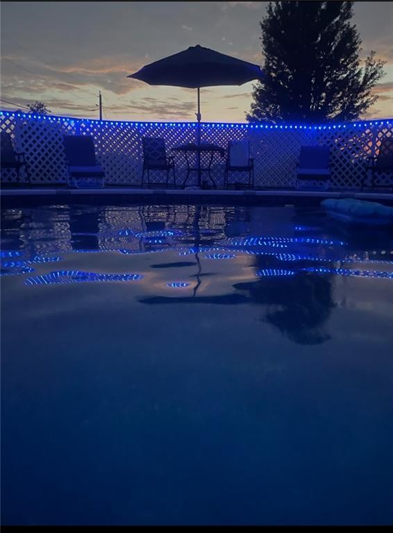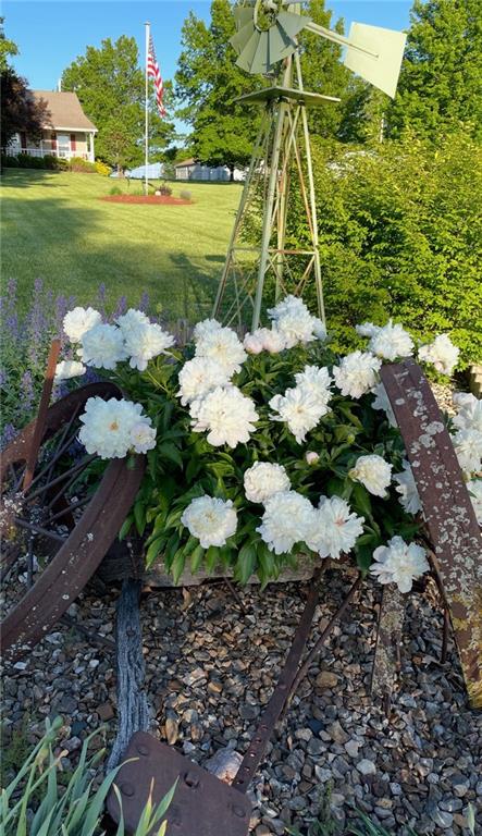 Look no further! Set back on a peaceful 2.4-acre lot, this 3-bedroom, 2.5-bath ranch home offers privacy, space, and versatility. The vinyl-sided home features a full length front porch, 2-car garage, long asphalt drive, and paved road access. Much of the main level has hardwood flooring. The kitchen includes stainless Whirlpool appliances, kitchen island and granite counters. As a bonus, the refrigerator, washer and dryer stay with the property! The laundry room is huge and has several built-in upper cabinets. Closets are cedar lined! Master has a walk in closet and master bath has a jet tub, seperate shower and toilet closet. The finished basement adds excellent living space with a huge family room, a cedar closet, half bath and large exercise room with mirrored closets and foam flooring. Enjoy outdoor living with an above-ground pool and composite deck (rafts, pump and pool cleaner included), fenced yard, garden area, and fruit trees—2 peach, 2 plum, and 2 apple, and gorgous flowers. A 36x16 outbuilding offers electricity on a separate meter, propane heat, and window A/C—ideal for a workshop or hobby space. There is also a shed for your garden tools. Taxes and Sq Ft are estimated. This property won't last long!