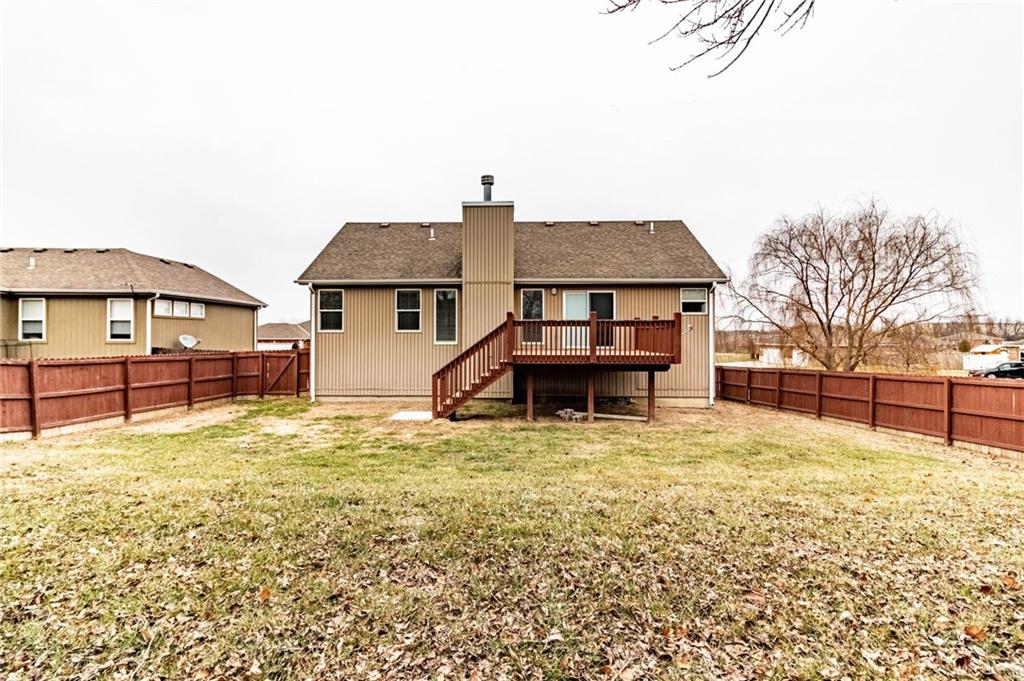 Beautiful 4 Bed/3 Bath home boasts high ceilings and an open floorplan. Large spacious living room offers an electric fireplace and lots of natural light. The kitchen features custom cabinets, stone backsplash, granite countertops, stainless steel appliances and a pantry. You can walk right out to the deck from the dining room sliding glass doors for easy access to BBQ, entertain, or just relax. The spacious primary bedroom and bath has high vaulted ceilings, separate jetted tub and shower, private toilet room, double vanities, and a walk-in closet. There are 2 more bedrooms, laundry, and a guest bathroom on the main level. The lower level offers a huge bedroom & full bath room. That room could be used as a family room. The huge backyard has a privacy fence and gates to access the front yard. There is an oversized 2 car garage attached. This home is located close to shopping, restaurants, and a short commute to Whiteman Air Force Base.