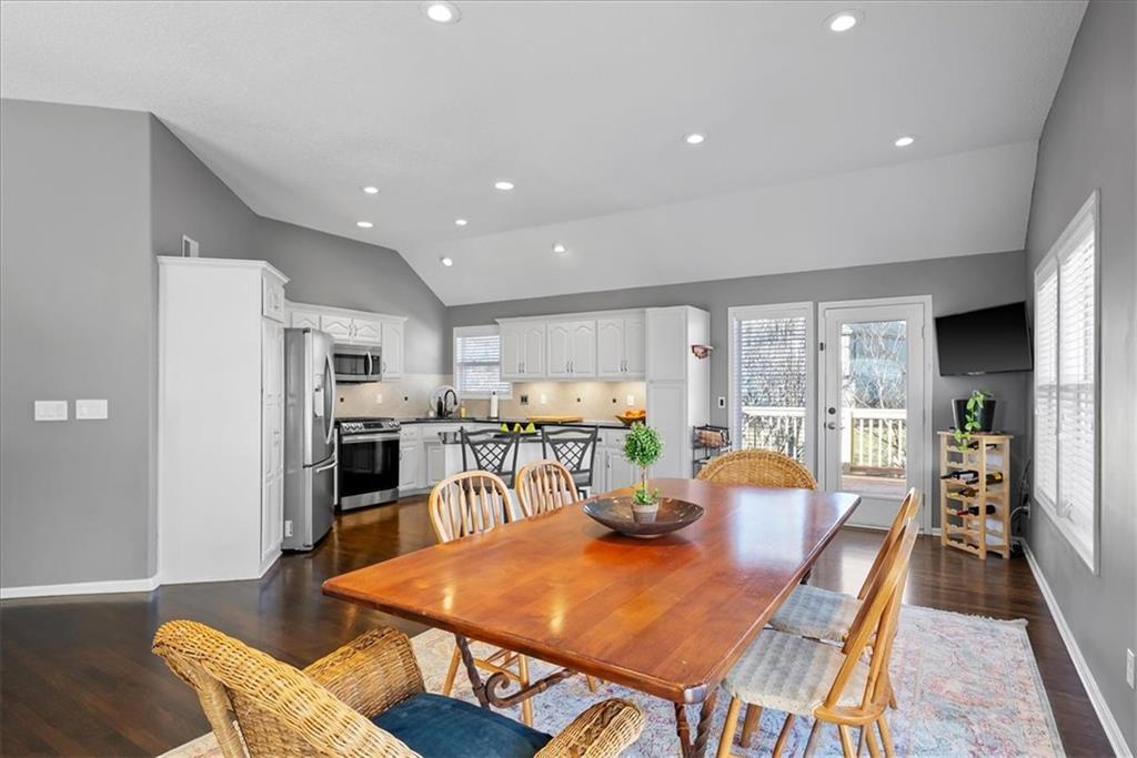 Welcome to this beautifully maintained atrium split, offering the perfect blend of modern updates, generous space, and everyday comfort. Step into the vaulted main level, where abundant natural light fills the open kitchen, dining, and living areas—ideal for both everyday living and effortless entertaining. The updated kitchen features crisp white cabinetry, stainless steel appliances, ample counter space, and a central island that truly serves as the heart of the home. The spacious dining area seamlessly adjoins the kitchen, creating a welcoming space for gatherings large and small. The primary suite is a true retreat, highlighted by abundant natural light, a second fireplace, and an upgraded en-suite bath with a separate tub and shower, double vanity, and a generous walk-in closet. With multiple living areas, this home offers plenty of room to spread out. The walk-out lower level boasts a large recreation room with a third fireplace, access to a fourth bedroom and third full bath, and direct access to the patio—perfect for guests, extended family, or multi-generational living. Outdoors, enjoy a large backyard featuring a deck just off the kitchen and an open patio below the walk-out level, ideal for relaxing or entertaining. This home delivers the space, style, and thoughtful updates today’s buyers are looking for—don’t miss the opportunity to make it yours.