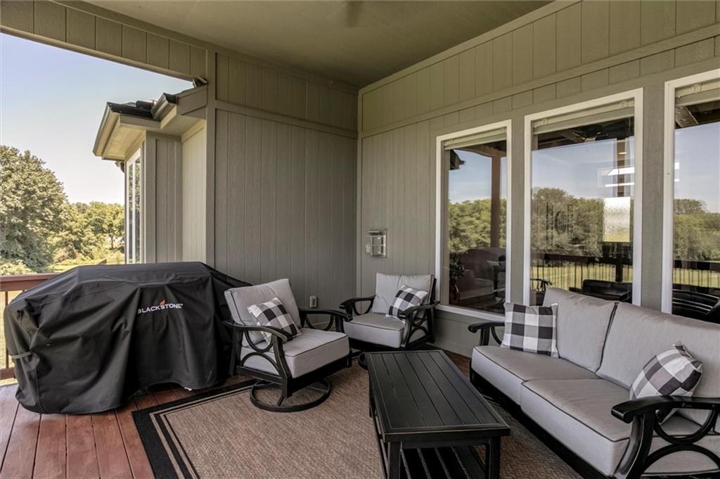 Nestled on a little over 3 acres in The Estates at The Ranch this home is a showstopper! Custom built with beautiful finishes. You will love the open floor plan, vaulted ceilings and box beams. Kitchen features upgraded appliances, a large walk-in pantry and soft close cabinets and drawers. Primary suite is oversized with an amazing closet and bath. 3 bedrooms on MAIN level for those that have small children or if multiple people need to be on the main level. Second smaller "secondary suite" includes a bath and walk in closet. Large lower level is stubbed for a wet bar/entertaining area with refrigerator. Two large storage areas. Storage area to the north could be a workshop. It is framed so you could put in double doors or a garage door for lawn equipment, ATV, boat or toys. The Covered deck, patio, fire pit and front porch make this home perfect for enjoying the outdoors. Country life close to the city. Minutes from 435, 169, I-29, 291 and 152. Home is very close to Smithville Lake and Paradise Point Golf Course. Enjoy the small town feel with all the amenities. In the highly rated Smithville School District. Buyer or buyer's agent to verify tax, sq ft and school district information.