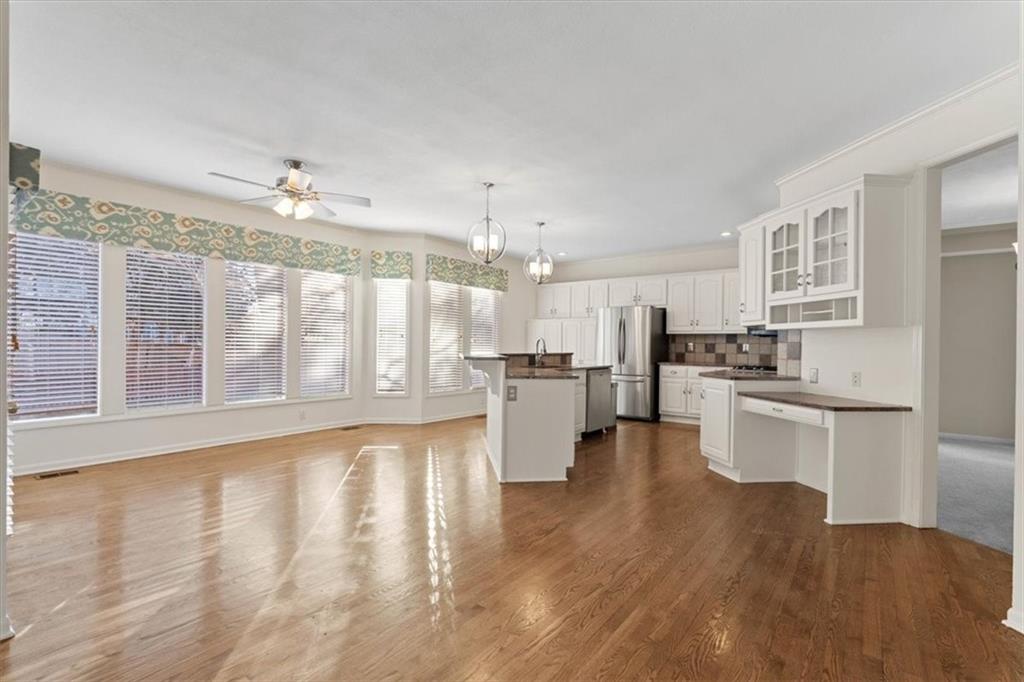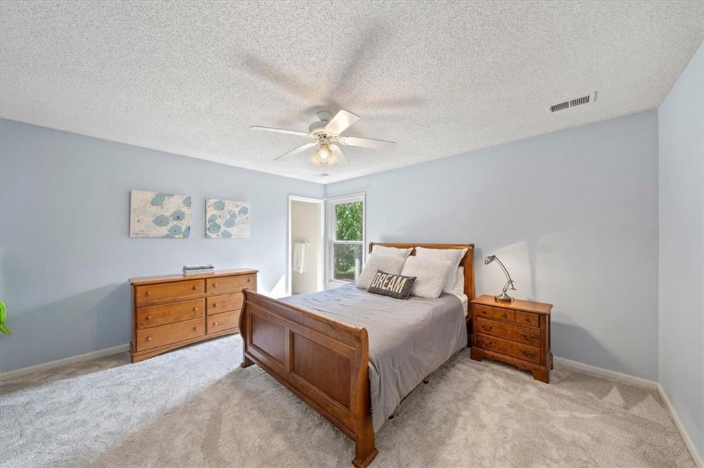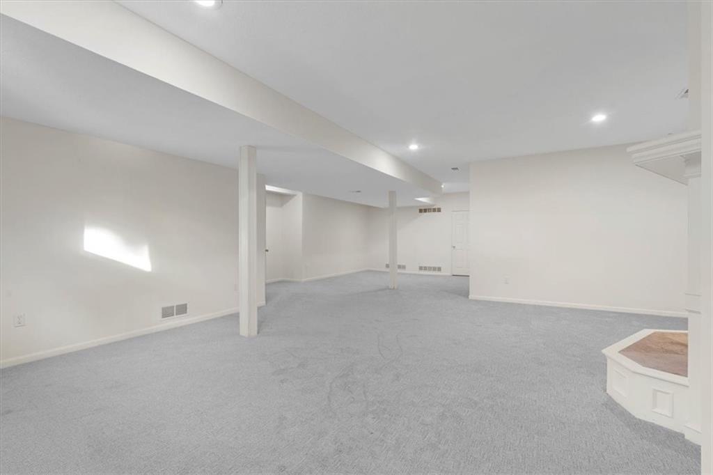 This is the home you have been waiting for in highly sought-after Blue Valley School District! Brand new freshly painted exterior on a spacious cul-de-sac lot. The private, fully fenced backyard is a serene retreat, featuring mature trees, low-maintenance rock landscaping, and a pergola-covered deck—perfect for relaxing or entertaining year-round. Inside, a stunning two-story foyer creates a warm and elegant first impression. The bright, open layout is enhanced by a wall of windows that fills the living spaces with natural light. The expansive kitchen showcases freshly painted soft-close cabinetry and an oversized island with generous seating, ideal for gatherings. The inviting family room offers a cozy fireplace and custom built-ins, perfect for everyday living or hosting guests. The spacious primary suite provides a peaceful escape with updated vanities and a whirlpool tub. Convenient second-floor laundry is located near all generously sized bedrooms. Fresh interior paint and new carpeting add a modern, refreshed feel throughout. Brand new carpeting and paint in the finished basement, complete with a second fireplace, offers versatile space for recreation, work, or relaxation. A three-car garage with an electric vehicle charger adds everyday convenience. Ideally located just minutes from top-rated schools, shopping, and dining.