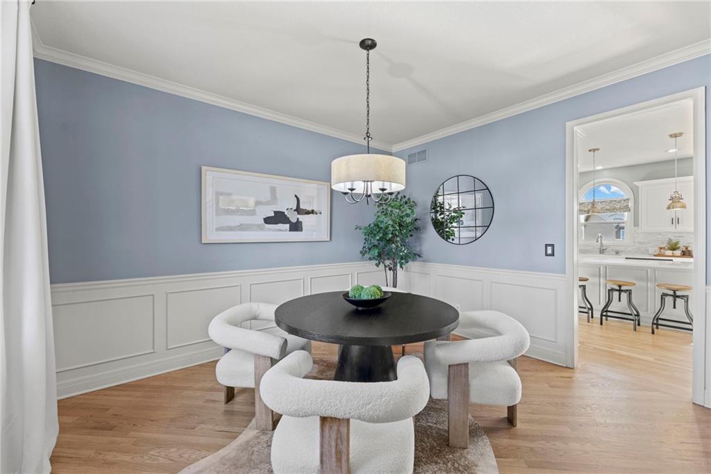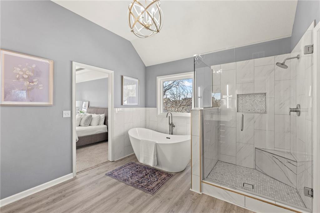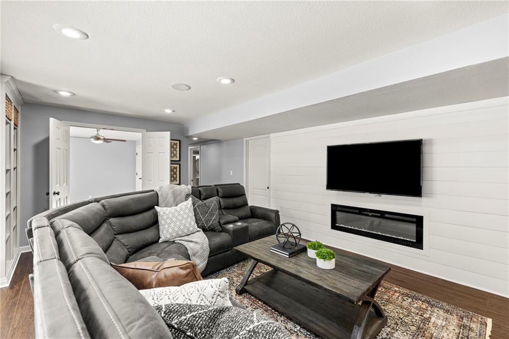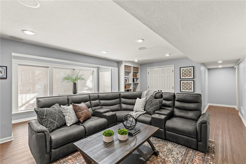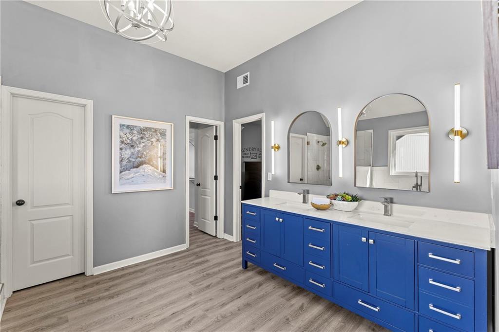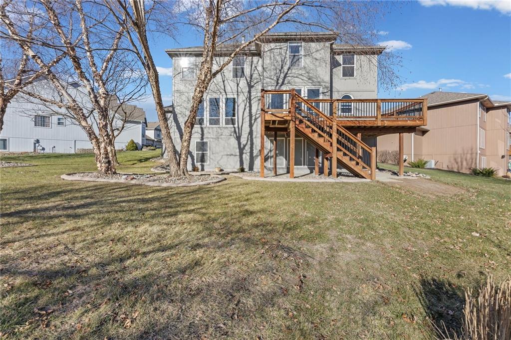 This magnificent custom home offers five bedrooms and a walk-out basement, showcasing sophisticated design and functionality. Updates including a new roof, windows, fixtures, and deck have enhanced the property's allure. The main floor features natural finish hardwood flooring throughout, a formal dining area, a large living room, and a hearth area that opens into a spacious kitchen. The kitchen is equipped with a pantry, a large island, black stainless steel appliances, and generous counter space. Upstairs, the layout includes an expansive primary bedroom, three additional bedrooms, and laundry facilities. The primary bedroom adjoins a luxurious en-suite bathroom with a soaking tub, large shower, and a vast 8 x 17 walk-in closet. The basement includes a kitchenette with a mini fridge, living area, a fifth bedroom, and a spacious full bathroom, making this property ideal.