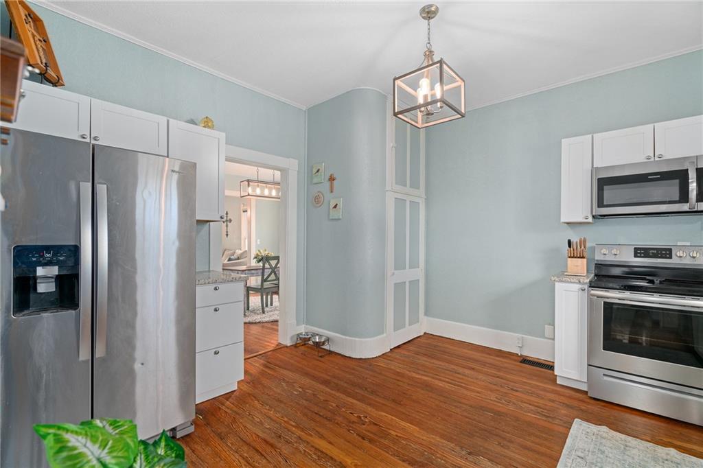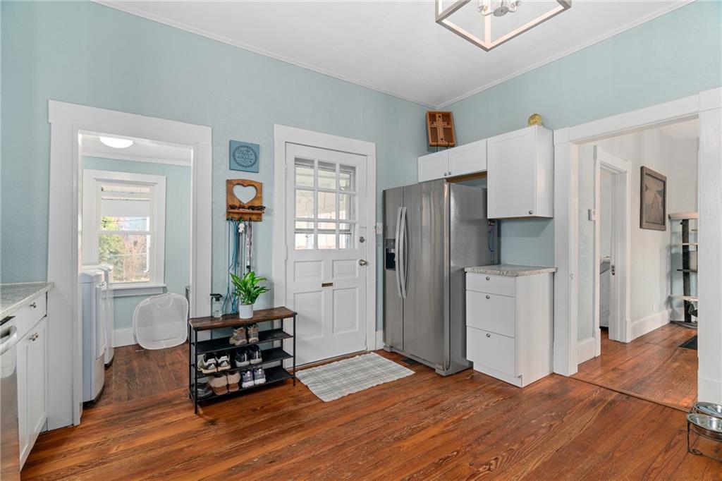 Start the new year in a home that blends classic charm with the comfort of modern updates. This beautifully refreshed ranch was thoughtfully renovated about four years ago, giving buyers the rare combination of character, convenience, and confidence. Major improvements were completed around 2021, including a new roof and gutters, new furnace, new water heater, and updated electrical, removing much of the stress that comes with older homes. Inside, the home feels bright and welcoming with tall ceilings, refinished hardwood floors, and original wood details that add warmth and personality. The updated kitchen features granite countertops, newer cabinets, a farmhouse sink, and stainless steel appliances, creating a space that’s both stylish and functional. A dedicated laundry area sits just off the kitchen for easy everyday living. Both bedrooms offer comfortable space and natural light, and the updated bathroom includes a surprisingly roomy closet. The dining room is perfect for gatherings, complete with a refreshed built-in buffet that adds charm and storage. Outside, enjoy the covered patio and generous yard—ideal for relaxing, grilling, or simply unwinding. To make the move even easier, the seller is including all appliances (washer and dryer too!), a small riding lawn mower, and a one-year home warranty. With its thoughtful updates, included extras, and truly move-in-ready condition, this home is an ideal fit for first-time buyers who want comfort, character, and fewer big-ticket worries.