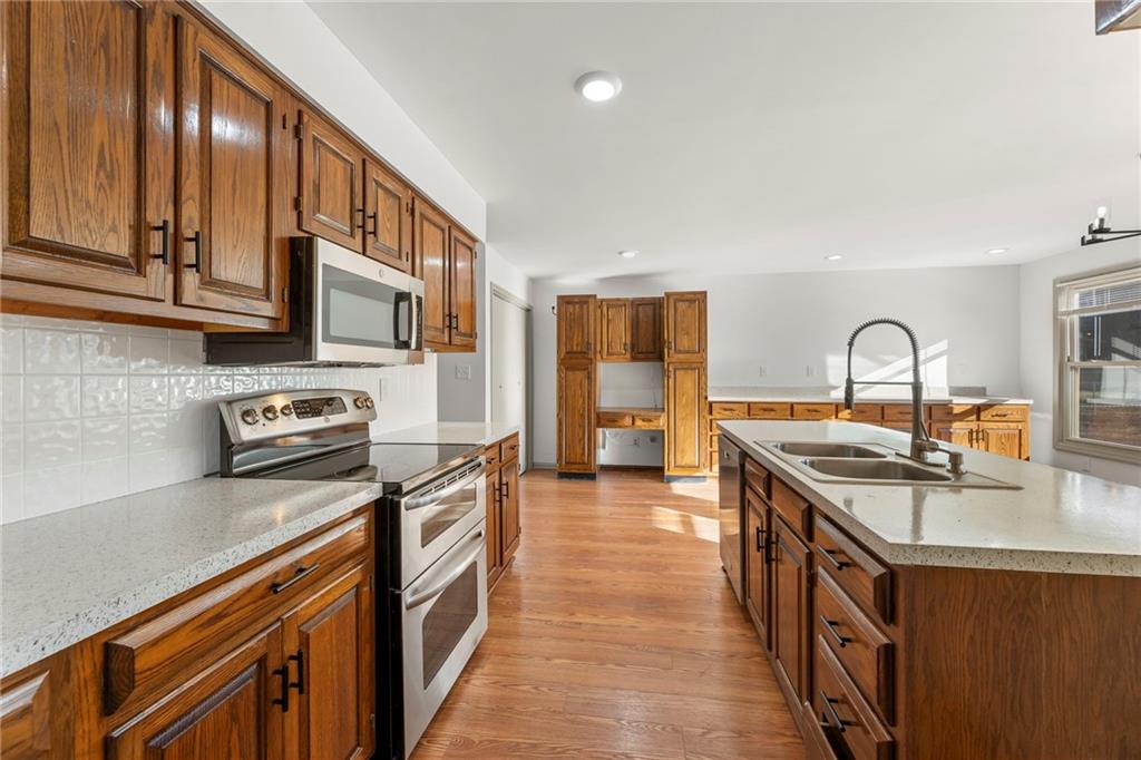 MOVE-IN READY HOME IN RAYTOWN! Entertainer’s dream with formal living and dining rooms, plus a spacious vaulted Great Room filled with natural light and featuring a brick fireplace and built-ins for stylish display. Delight the chef in the well-appointed kitchen offering an eat-in peninsula, pantry and stainless steel appliances, including a double oven! Adjacent breakfast area walks out to the back deck—ideal for outdoor dining and relaxing. Main level includes a private primary suite with en-suite bath and walk-in closet, two additional bedrooms and a second full bath. Finished basement expands your living space with a family room showcasing a second fireplace, rec room with wet bar, office, bonus room, and half bath—perfect for work, play, and entertaining. Oversized garage and shed provide ample storage. Convenient location close to dining, shopping and easy highway access to enjoy all Kansas City has to offer. WELCOME HOME!