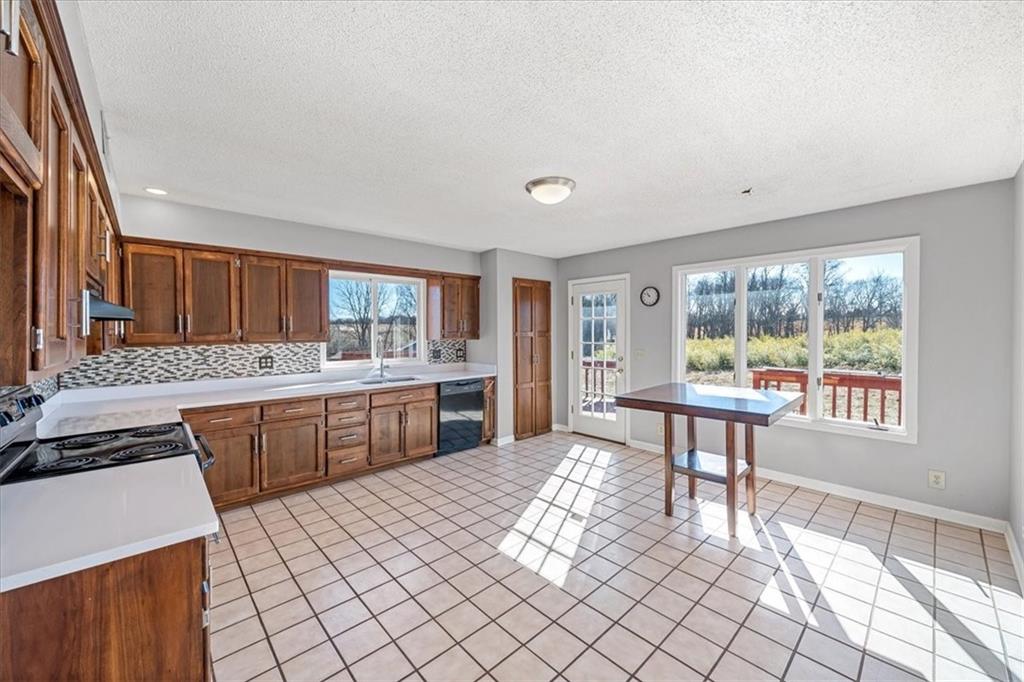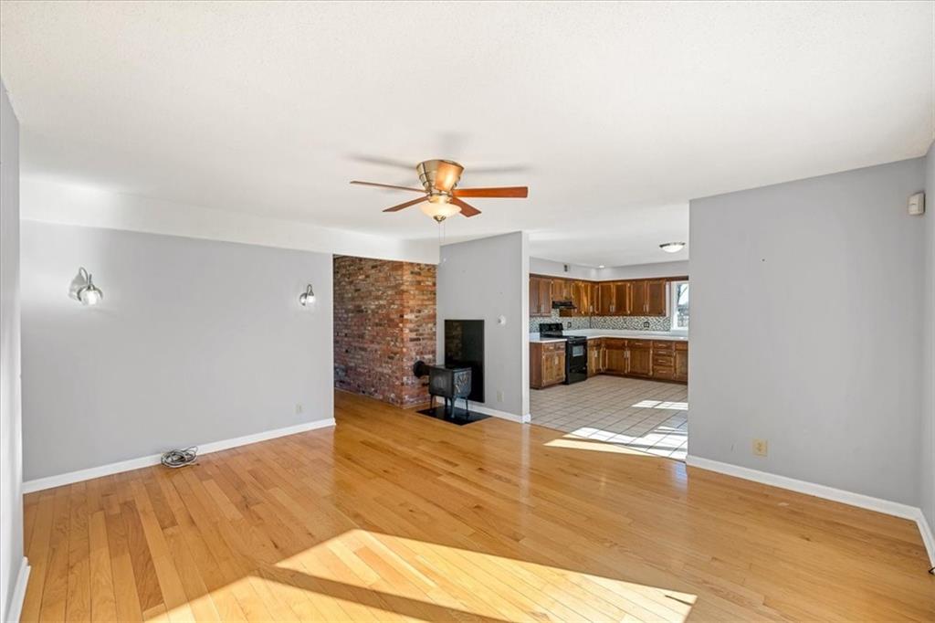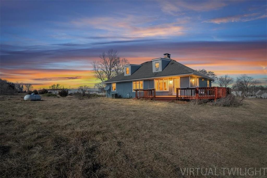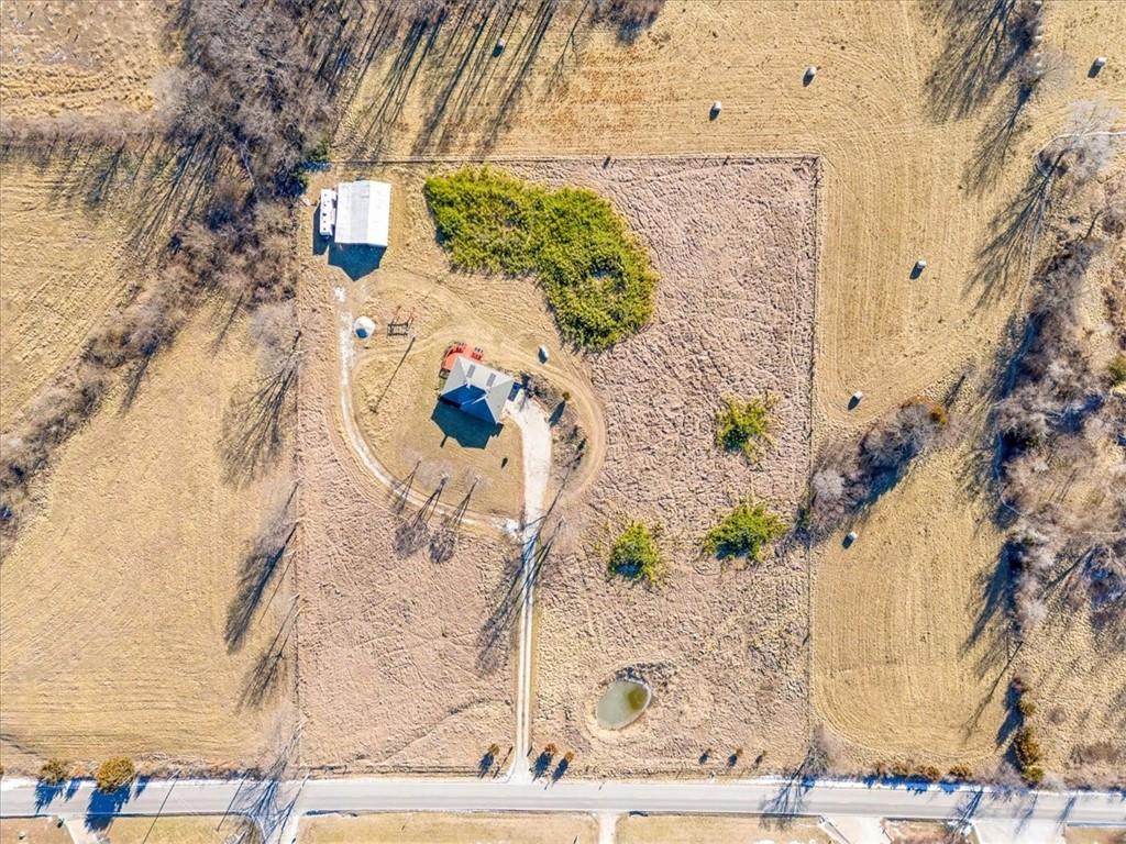Wake up to quiet mornings, open skies, and views that stretch in every direction. Set on 4.71 serene acres, this ranch-style home is a rare blend of warmth, light, and breathing room. Sunlight fills the open, easy-flow floorplan, while a massive wood-burning fireplace becomes the soul of the home—perfect for slow evenings and gathered conversations. The oversized eat-in kitchen invites connection, featuring granite countertops, generous space to cook and linger, and windows that frame the surrounding landscape. Step outside or simply look out—every angle offers calm, privacy, and a sense of escape. The walkout basement holds exciting potential for additional finished living space and includes a storm shelter and food pantry, along with a stair lift on track for added accessibility. A small barn and wide-open acreage invite hobbies, animals, or simply the freedom to roam. With very little updating needed, this is a place to settle in, exhale and make your own.