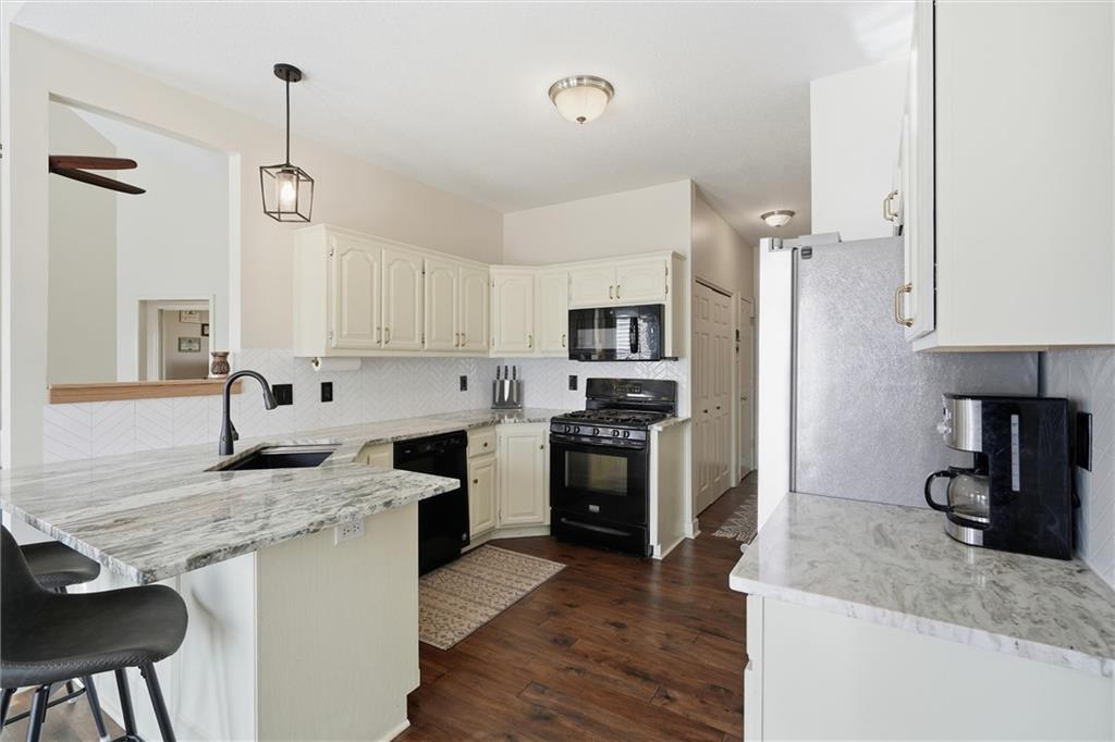 Don’t miss your chance to own this beautiful ranch home tucked away on a quiet cul-de-sac! Step inside to soaring ceilings, rich wood flooring, and designer finishes throughout. The inviting living room features a stunning fireplace and opens seamlessly to the remodeled kitchen, complete with granite countertops, subway tile backsplash, and stainless steel appliances. The spacious primary suite offers a private en-suite bath, while two additional bedrooms and a full bathroom complete the main level. Downstairs, enjoy an impressive walkout basement with a large rec room, additional bedrooms, a full bathroom, and ample storage space. Could add a closet and have a 6th bedroom as well. Relax or entertain on the brand-new deck overlooking a large fenced-in backyard with serene pond views. Major updates include a Daikin HVAC system with humidifier and whole-home air cleaner (only 2 years old) and a roof just 6 years old. Nothing left to do but move in!