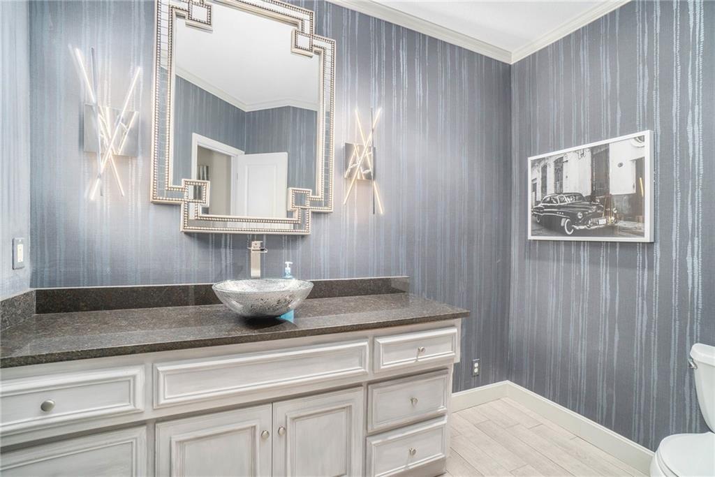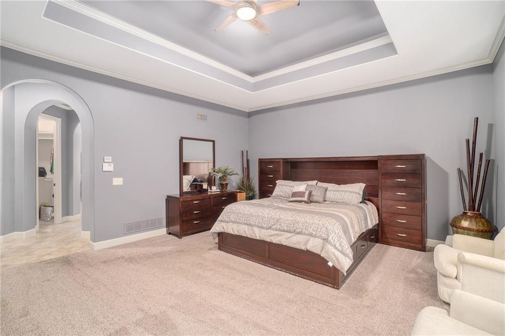 This magnificent Reverse 1.5 Story in Tremont Manor sits on a desirable corner lot backing to lush, mature trees, offering both privacy and curb appeal. Thoughtfully updated throughout, the home features soaring ceilings, beautiful built-ins, and an open, airy floor plan designed for comfortable living and effortless entertaining. The kitchen showcases hardwood floors, a generous island, and abundant cabinetry, flowing seamlessly into the main living spaces. The spacious primary suite is a true retreat with dual vanities, custom built-ins, a walk-in shower, and a separate whirlpool tub. A well-appointed main-level office is filled with natural light, making it ideal for working from home. The finished lower level is perfect for entertaining, complete with a full bar, game area, and expansive family room. The impressive 19x22 suspended garage provides exceptional storage and features a convenient double-door exterior entrance. Step outside to enjoy the peaceful backyard from the covered deck or patio. Recent updates include a newer roof, updated interior and exterior paint, refreshed landscaping, updated light fixtures, flooring, and more. A truly exceptional home—this one is a must-see!