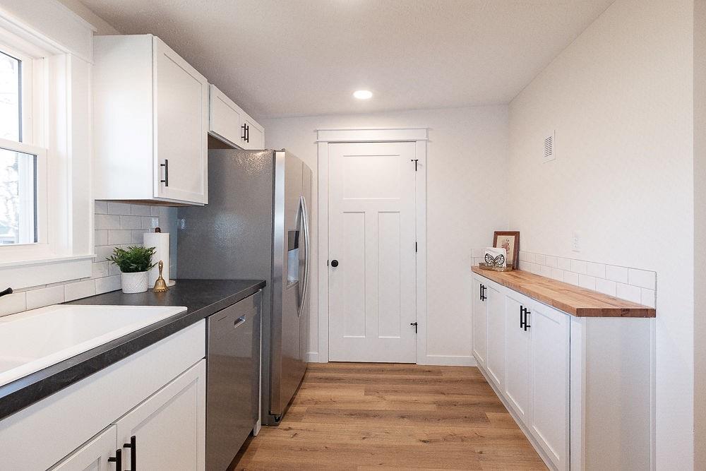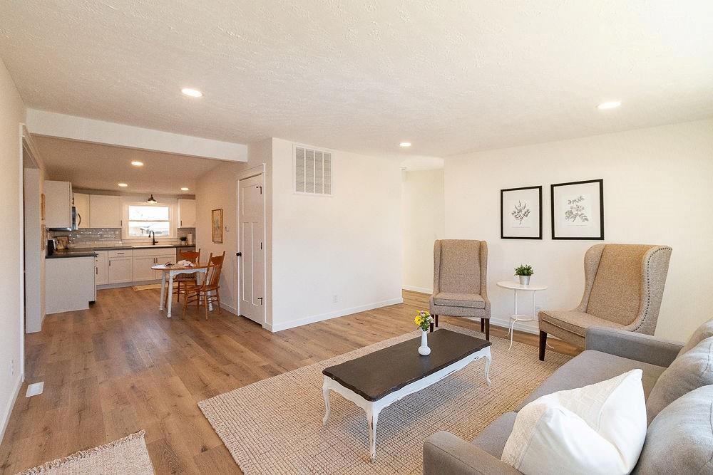 This lovely, remodeled home features expanded openings, dual living spaces and dining areas, and a fully renovated kitchen complete with new appliances, and a butcher block workspace. An upgraded header enhances the flow and architectural style throughout. All new windows, doors, trim, hardware, and garage doors have been replaced for a crisp, modern finish. The bathrooms are updated with new fixtures and vanities, while the laundry room has relocated hookups, new drain lines, and added shutoffs. New vinyl plank flooring, bedroom carpet, and newly interior paint on ceilings, trim, walls and doors, create a fresh, move-in-ready feel. Electrical upgrades include new lighting, switches, outlets, an updated panel and mast, plus added circuits. Added insulation, serviced HVAC components, and updated window treatments complete this transformation. Exterior improvements include new gutters, re-graded drainage, tree removal, fresh soffits and fascia, and roof repairs. Hosting and outdoor possibilities are abundant with this spacious corner lot and backyard area.