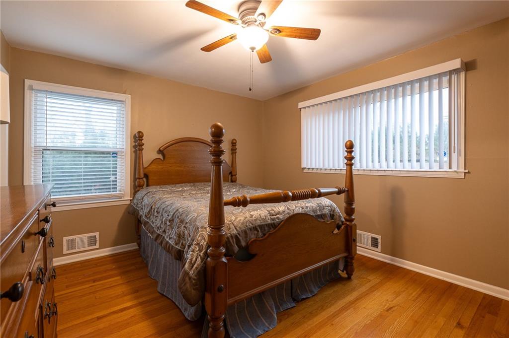Ideally located, this charming ranch offers convenient one-level living just minutes from Avila College, highways, shopping, and the highly sought-after Country Lane Estates. The updated kitchen features white cabinetry, a built-in oven, drop-in range, granite countertops, and beautiful wood flooring that flows seamlessly throughout the home. Two spacious living rooms- each highlighted by a classic brick fireplace- create warm and inviting gathering spaces. The home also offers a formal dining room plus a cozy breakfast room off the kitchen. Three spacious bedrooms feature wood flooring, ceiling fans and two-inch blinds that allow abundant natural light. Two tiled bathrooms with built-ins- one with a shower/tub combination and a private primary bath with a walk-in shower. Situated on a large corner lot, the outdoor space boasts a generous patio, a quaint storage shed, and mature trees providing privacy. The full basement offers a blank slate, ready to be finished to suit your needs. This one won't last long!