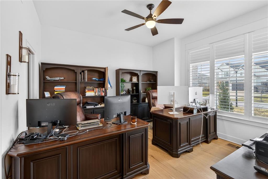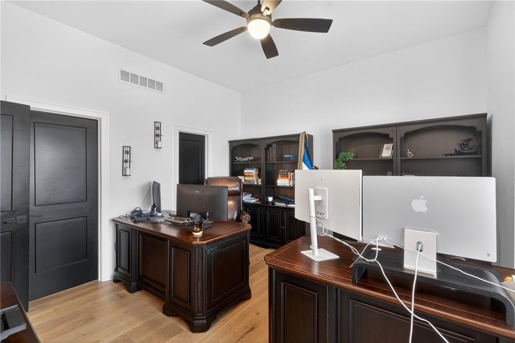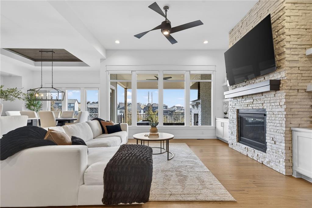 Welcome to this exceptional 1.5-story, 7 bedroom residence in the highly sought-after Cedar Creek community, where space, luxury, and everyday functionality come together. Offering 7 bedrooms, 7 bathrooms, and 5,039 square feet of thoughtfully designed living space, this home delivers comfort and flexibility for today’s modern lifestyle. The open-concept floor plan features multiple living areas and effortless flow, perfect for both daily living and entertaining. At the heart of the home is a stunning chef’s kitchen equipped with Monogram appliances, walk-in pantry with convenient grocery door, and generous workspace. Three fireplaces add warmth and character throughout, while a main-level office provides an ideal work-from-home setup. Upstairs, a spacious loft offers additional living or recreational space. The finished lower level is designed for entertaining, complete with a full bar and expansive family room—perfect for movie nights, game days, or hosting guests. Practical touches include a well-appointed mudroom and a 3-car garage with overhead storage for optimal organization. This home is enhanced with smart-home features including Nest thermostats, a hardwired security system with doorbell and three exterior cameras, and automated blinds in the living and dining areas. Outdoor living is equally impressive with a two-story covered deck featuring an outdoor fireplace and views of the beautifully landscaped backyard. Backing to mature trees and a serene valley, the setting offers privacy and a peaceful retreat, complemented by a fully automated irrigation system. Located in a quiet section of Cedar Creek, residents enjoy access to resort-style amenities, top-rated schools, nearby parks, and convenient highway access. This is a rare opportunity to own one of Cedar Creek’s most impressive homes—where timeless design meets modern convenience in an unbeatable location. Buyer and buyers agents to verify schools and tax info and room sizes.