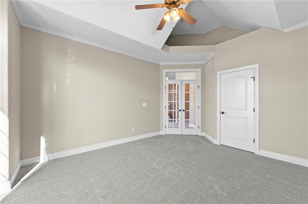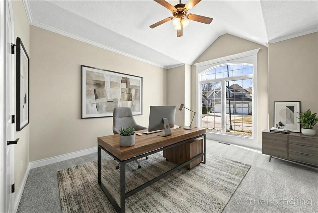 Custom Reverse 1.5 Story home situated perfectly on a private, treed, TRANQUIL lot! Timeless and elegant, this uniquely designed open and spacious floor plan is one-of-a-kind! Soaring ceilings and treed views! Optional 2nd Bedroom, or office on main floor and formal dining off of the entry. Great room that is open to a cozy hearth room w/ gas fireplace, Wetbar, casual dining, hardwood floors, and extended kitchen island with Electric Cooktop, Hardwood floors and HUGE walk-in Pantry! Your own personal Grill Deck from hallway close to kitchen and laundry. Open Deck off of breakfast and hearth room, walk out to your outdoor private OASIS! Stunning, stamped concrete veranda to custom courtyard, waterfall feature, fire pit and mature trees! Perfect for those shaded summer evenings! Spacious Primary Suite and Bath boasting Ceramic Tile Floors, double vanity, whirlpool tub, walk-in shower, and fabulous walk-in closet! Walkout/Walk-up LL with stairs to the concrete Veranda. Open Recreation Room, 2nd Bedroom suite, 3rd full bath, 4th Bedroom and tons of storage! All new carpet throughout! Oversized 3-car garage w/ tall ceilings! Enjoy the perks of living in Tiffany Greens! Golf cart ride to the Community Center & Pool! Set up a round at Tiffany Greens or become a member! Airport is less than 7 minutes away & access to I-29/152/Barry Road/Zona Rosa w/ shopping and restaurants! A true gem awaits! LOVE WHERE YOU LIVE!