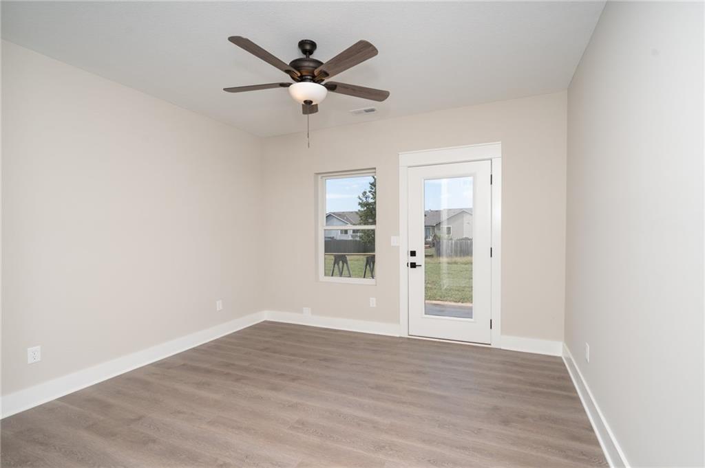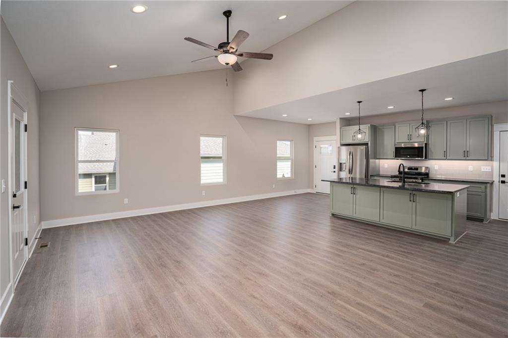 Price Reduction and 5 Year Tax Rebate!! New construction townhome with main-level primary bedroom including double closets. The stylish kitchen is designed to be highly functional, with quartz countertops, a gas range, soft-close cabinets and drawers, and a large pantry. Storage is plentiful throughout this home. The main level bath offers a spacious, beautiful onyx shower. Downstairs, three additional bedrooms share a full bath. There's also extra living space and a spacious laundry room in the walkout basement. One of the downstairs bedrooms opens directly to a patio, providing a private spot to relax or enjoy the outdoors. LVP flooring runs through the main living areas, giving the home a modern look and durability. The neighborhood is just north of town, offering a quieter setting while keeping Highway 56, Gardner, and Lawrence within easy reach. Homeowners can also take advantage of a 5-year tax rebate by submitting proof of tax payment with the city each year to qualify for the rebate.