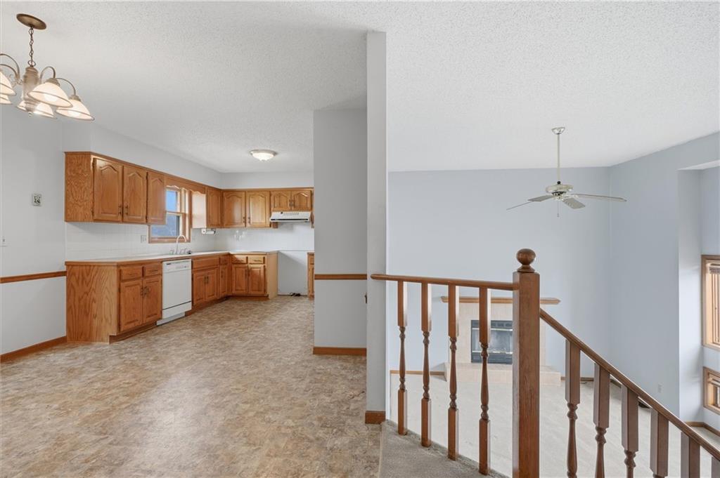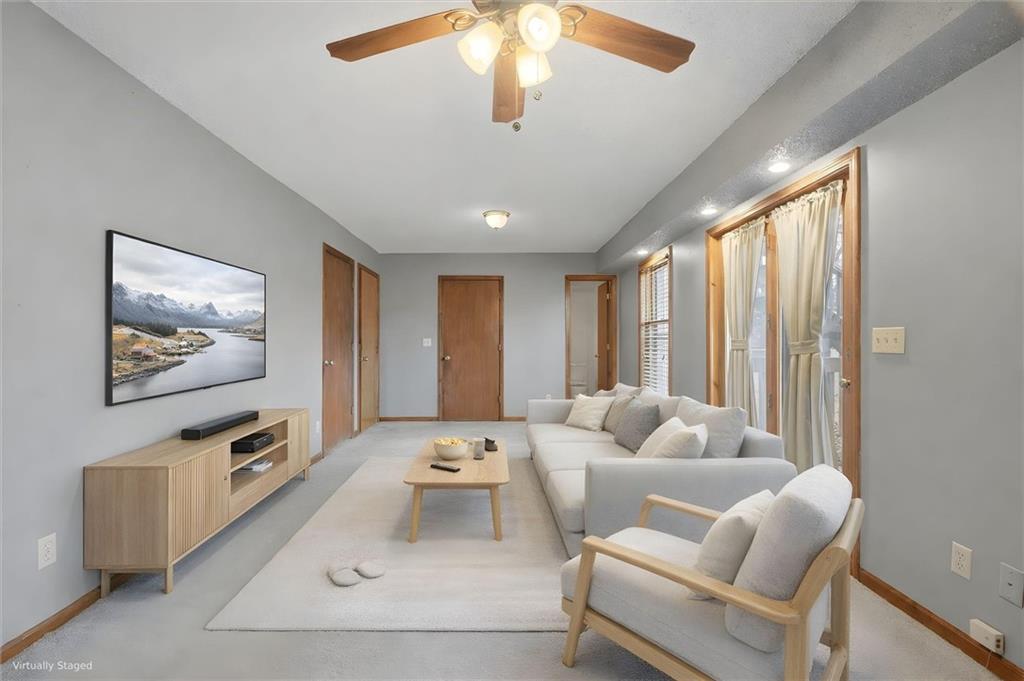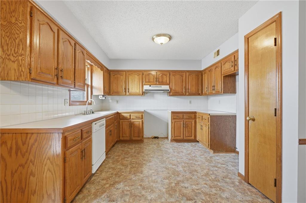 Inviting front-to-back tri-level split with sub-basement offering three bedrooms, two full baths, and one-half bath in a comfortable and functional layout. Vaulted ceilings in the living room highlight a wood-burning fireplace and classic stain-and-grain woodwork that carries throughout the home. Flooring includes a combination of carpet and linoleum. Oversized primary suite features a private bath and walk-in closet, while two additional bedrooms and a full hall bath provide flexibility for family, guests, or home office use. Main-level laundry is conveniently located in the hallway near the bedrooms. Finished lower-level family room adds valuable living space and offers walk-out access to the backyard and deck. Unfinished sub-basement measuring approximately 23 x 13 provides excellent storage or future finishing potential. Oversized two-car garage approximately 19 x 29 offers ample room for vehicles, storage, or workspace. Approximately 1,500 finished square feet above grade. Home is priced to reflect cosmetic updating needs and presents a strong sweat-equity opportunity without requiring a full renovation, ideal for buyers or those looking to personalize and build equity in the Smithville market. Sellers inherited the property and have never occupied the home. Disclosures completed to the best of their knowledge.