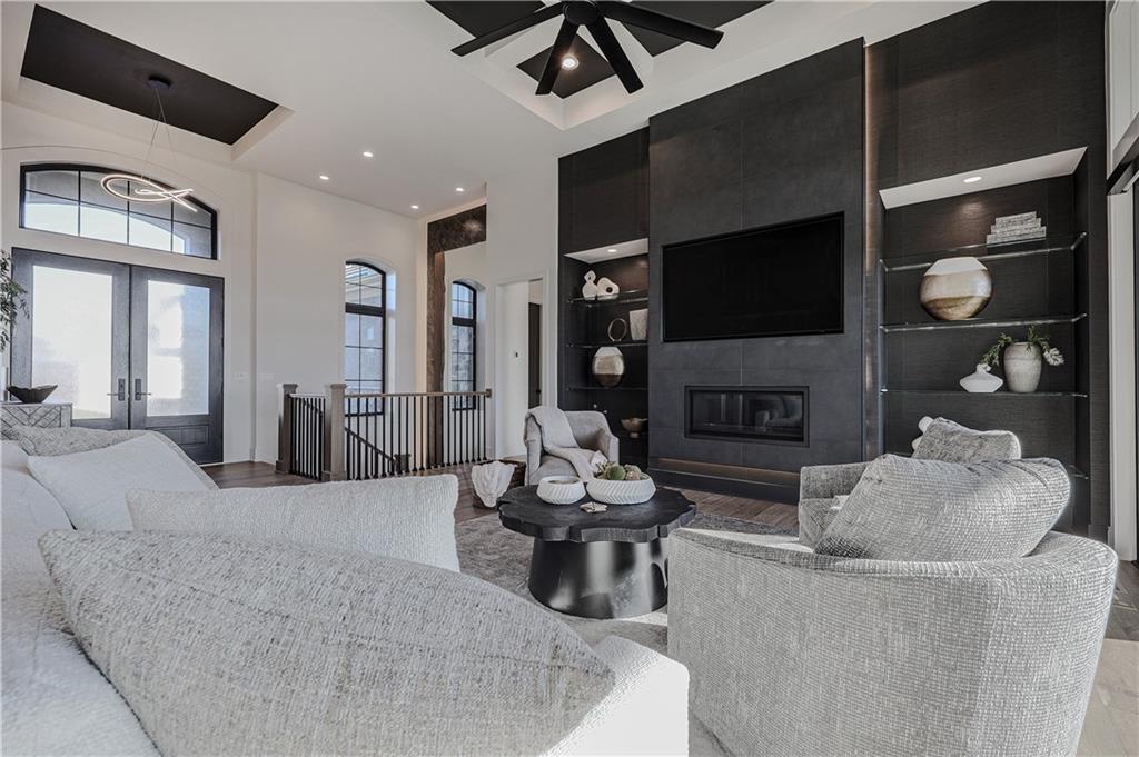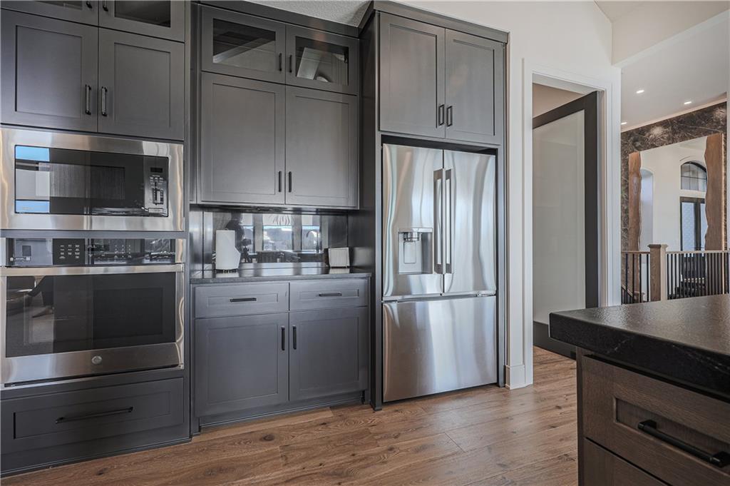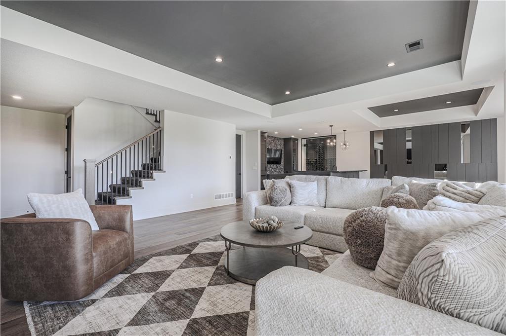 From the moment you arrive, this Casa Bella former model home feels less like a house & more like a private retreat. Set on a wooded lot in The Preserve at Forest Ridge Estates, the Northland’s premier luxury community, you’re perfectly positioned just minutes from Parkville & downtown Kansas City, w/effortless access to MCI airport for quick getaways & seamless business travel. Urban convenience meets serene seclusion in the best possible way. Inside, soaring ceilings in the gathering room draw your eye up, while a wall of windows pulls your gaze out toward the trees & the screened-in covered patio, creating a true indoor/outdoor living experience. The heart of the home is a chef-inspired kitchen that quietly extends into a hidden Caterer’s Kitchen tucked inside a spacious pantry, ideal for hosting holidays, catered events, or intimate dinners where everything feels beautifully orchestrated, & nothing feels cluttered. The owner’s suite is designed as a sanctuary, w/a spa-like bath & a sunlit, generous walk-in closet. An additional main-level bedroom offers versatility as a refined guest suite or an elegant home office, giving you flexible space that adapts to the way you live. On the lower level, the home transforms into an entertainer’s playground. A striking wet bar features a one-of-a-kind wine feature wall & a dedicated wine & beverage refrigerator, opening into an expansive rec room w/a custom entertainment wall perfect for game days, movie nights, or hosting friends. Two spacious bedrooms on this level ensure everyone has their own comfortable, private retreat. A fully suspended (excavated) garage offers exceptional storage or future finish possibilities, whether you imagine a fitness studio, golf simulator, or theatre room. The canvas is yours. With its modern design, curated finishes & unbeatable location near Parkville, downtown Kansas City, and MCI airport, this residence is more than a home; it is a lifestyle, waiting for its next chapter