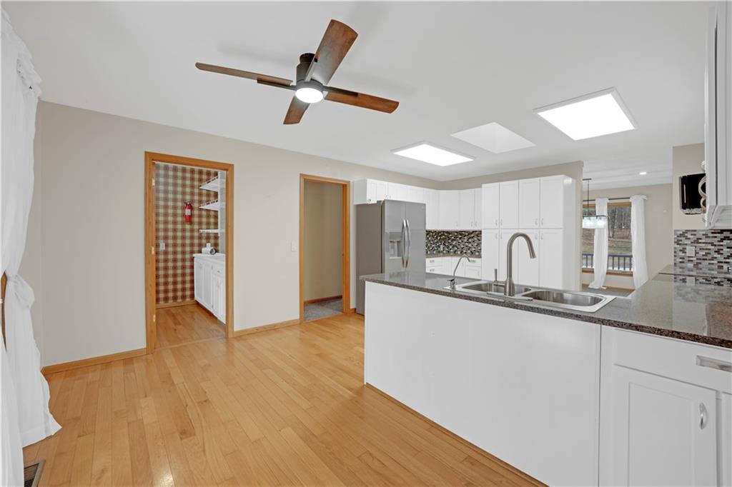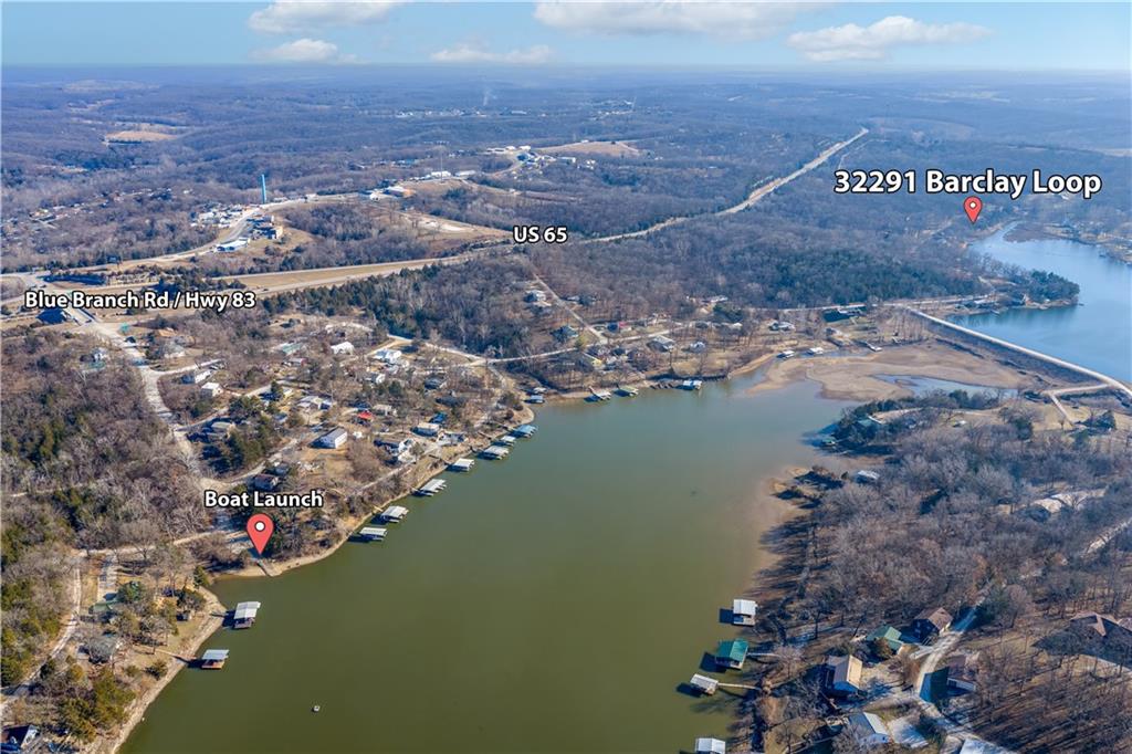 Spacious waterfront home offering approximately 4,671 sq ft with 4 bedrooms and 3 full bathrooms on Gatcliff Lake in Warsaw, Missouri. The property features approximately 280 feet of water frontage and a private dock with lift. The main level includes an entry foyer with skylight, office area, two dining areas, and a kitchen with custom cabinetry, quartz countertops, stainless steel appliances, and skylight. The open-concept living areas lead to a sunroom with vaulted wood ceiling, pellet stove, and lake views, plus a large deck. The primary bedroom includes an adjoining bathroom and walk-in closet. A second bedroom, full bathroom, laundry area, and attached two-car garage are also on the main level. The lower level offers a family room with pellet stove and lake views, two additional bedrooms, a full bathroom, and a screened-in porch. Additional features include a 24’ x 30’ detached two-car garage with storage, a lakeside fire pit, and water feature. Located approximately 10 minutes from downtown Warsaw with access to shopping, dining, and nearby boat ramps to Lake of the Ozarks and Truman Lake. Suitable for full-time or seasonal use.