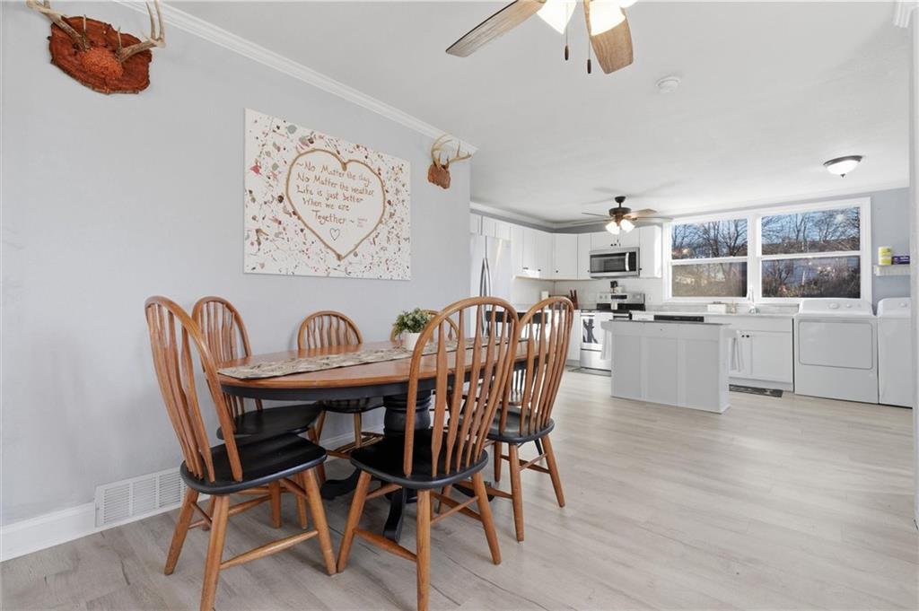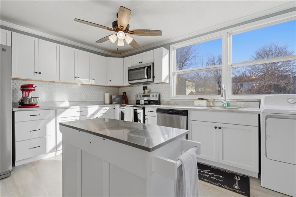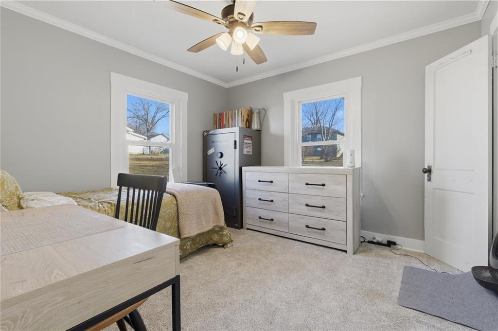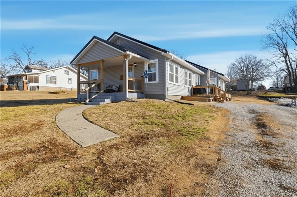 Like new! Nearly every major component has been replaced within the last 18 months, including a metal roof, vinyl siding, vinyl windows, HVAC, water heater, appliances, flooring, cabinets, and fresh paint. Enjoy this beautifully updated 2-bedroom, 1-bath home offering over 1,100 sq ft of living space in the heart of Richmond, MO. An inviting front porch welcomes you home and provides the perfect spot to enjoy your morning coffee. Inside, the open layout seamlessly transitions into a spacious dining area and kitchen, featuring ample cabinet space that is ideal for both entertaining and everyday living. Spacious bedrooms offer ample closet space, while a versatile mudroom or office is conveniently located off the kitchen with access to the back deck—perfect for grilling, chilling, and outdoor gatherings. Move-in ready with modern updates throughout, this home offers comfort, convenience, and peace of mind.