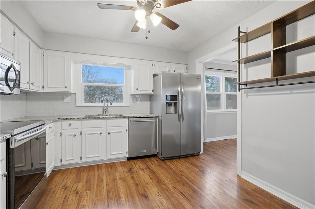 Welcome to 7614 Grandview Lane in Overland Park, KS. Discover the perfect blend of convenience and tranquility in a highly desirable neighborhood, tucked away on a quiet street yet moments from AdventHealth Shawnee Mission, 75th Street shopping and dining, I-35, and everyday essentials, offering an unbeatable location within the highly regarded Shawnee Mission School District. This 3 bedroom, 2.5 bathroom home provides 1,403 sq ft of thoughtfully designed space with a versatile side split layout balancing functionality and privacy. Inside, you will find inviting living areas filled with natural light, beautiful hardwood floors, and neutral finishes allowing you to move right in. The updated kitchen features granite countertops, stainless steel appliances, and ample cabinet space, flowing seamlessly into the main living and dining areas, ideal for everyday living and entertaining. The primary bedroom includes an ensuite bathroom, while two additional bedrooms offer flexibility for guests, a home office, or other lifestyle needs. The finished walkout basement expands your living options with a full bathroom, well suited as a family room, guest suite, workout space, or media room, while an unfinished sub basement provides excellent storage or future expansion potential. Recent updates include newer exterior paint, updated flooring in the basement and stairway, improved attic insulation added in 2024, and refreshed ceiling fans throughout. Outside, the oversized deep fenced backyard offers exceptional space and privacy for outdoor entertaining, play, gardening, or pets, along with a storage shed and attached one car garage. With easy highway access and close proximity to downtown Kansas City, the Plaza, Prairie Village, and Antioch Park, this home delivers on location, livability, and outdoor space. Step inside and explore everything this home has to offer!