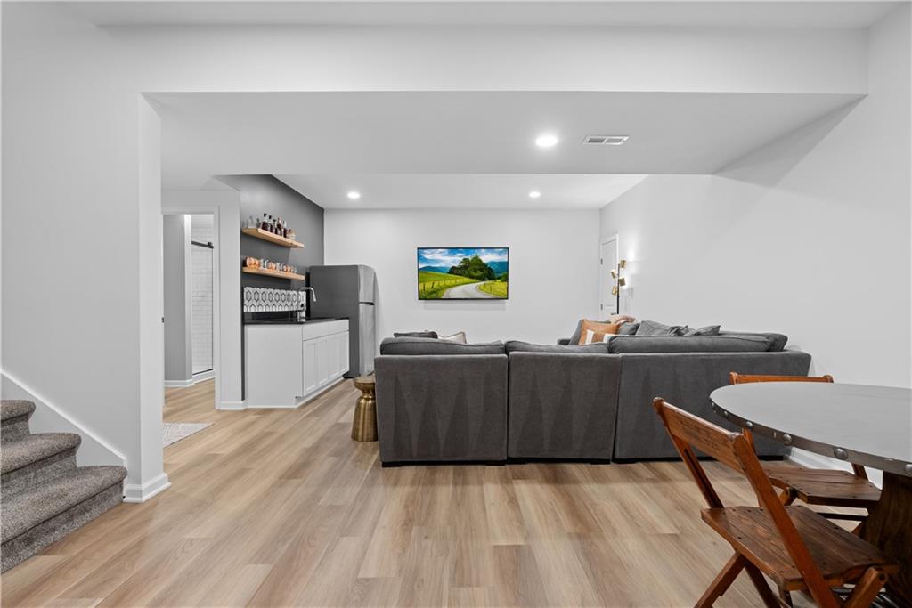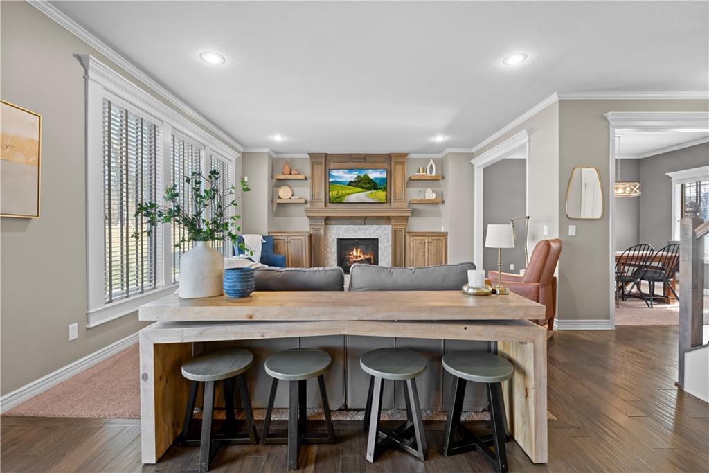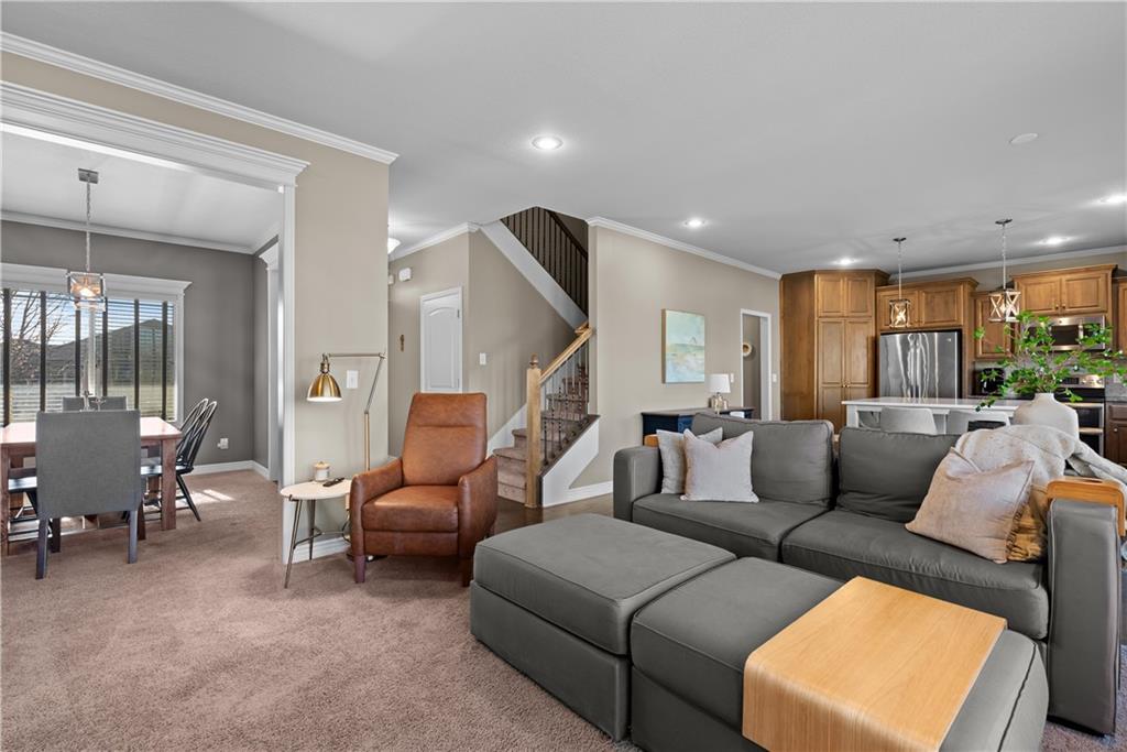 Incredible chance to acquire a well-maintained residence with no neighbors situated behind it, located in the esteemed Eagle Creek subdivision and in the award-winning Lee's Summit West school District. This property boasts a backyard sanctuary designed for the ultimate custom outdoor living experience, featuring integrated lighting throughout the stone patio, a firepit equipped with a gas starter for convenience, and a stone pathway leading to an elevated patio nestled among the trees, providing a panoramic view of the surroundings, all enveloped by exquisite landscaping and a plethora of flowers. The interior has been meticulously preserved! The full egress basement was recently completed in 2023 and includes a family room with a wet bar, marble backsplash, and granite countertops. Additionally, there is a 5th bedroom accompanied by a full bathroom featuring a tiled walk-in shower The open floor plan on main level encompasses a formal dining area and custom shelving surrounding the fireplace in the spacious living room. Notable features include beautiful cabinetry, hardwood flooring, a formal dining area, an oversized kitchen island, and a pantry. The expansive primary bedroom is equipped with dual walk-in closets and a well-designed bathroom. There are three additional bedrooms on the upper level, each offering ample closet space, along with a laundry room conveniently located on the bedroom level. Public park down the street with playground, pickleball and tennis. Active neighborhood.