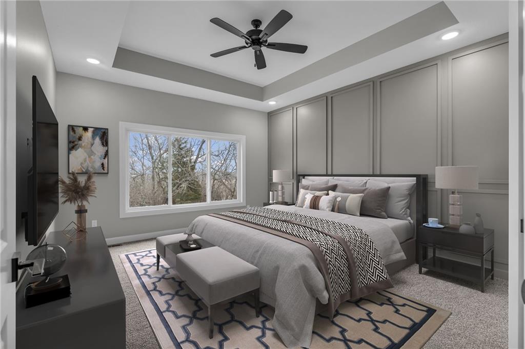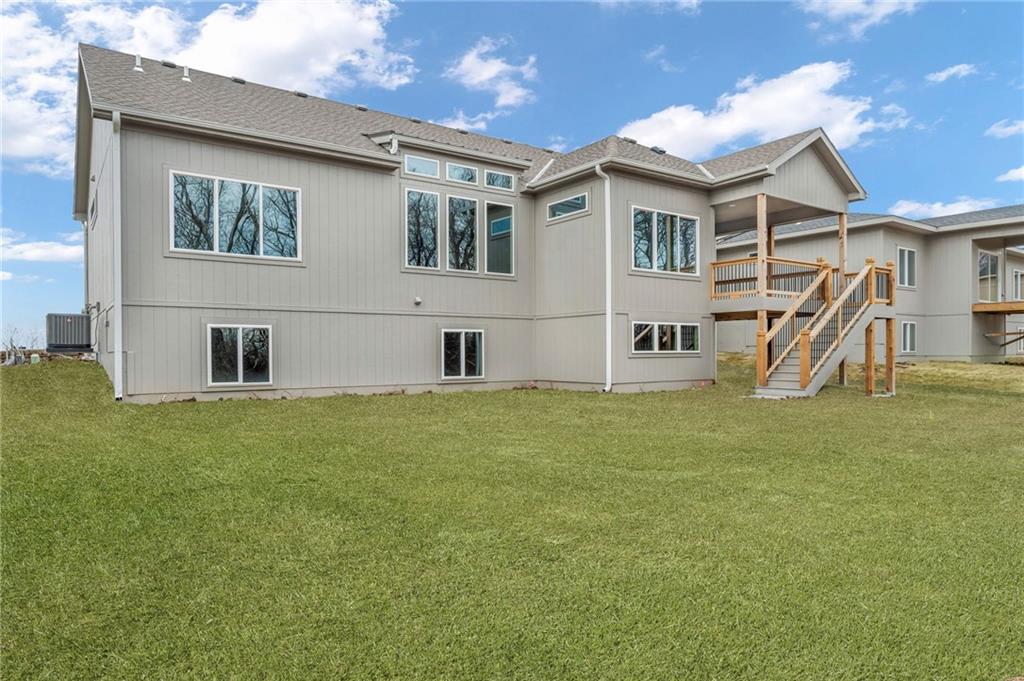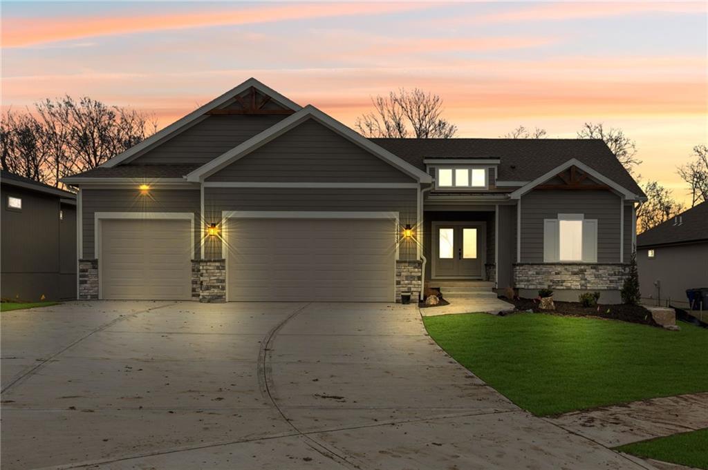 The Bridgeport II Estate floorplan built by Drippé Homes. Open concept daylight basement with tons of natural light! Kitchen furnished with stainless appliances, gas cooktop, hood vent, microwave, wall oven, quartz countertops, large island with oversized sink and spacious walk in pantry. Two bedrooms on main with primary opposite other bedroom. Ensuite features double vanity, tiled walk-in shower, private water closet and gigantic closet with pass through to laundry. Mudroom off garage with boot bench. Finished basement with two additional bedrooms and rec room complete with wet bar, ready for hosting the next big game. Cozy up to the fireplace in the living room or enjoy the sunrise from the covered composite deck. Home backs to tree-line providing ultimate privacy with sod and sprinkler system included. Unfinished basement storage, built-ins and three car garage provide plenty of storage. Almost ready for your personal touch - schedule a showing today!
