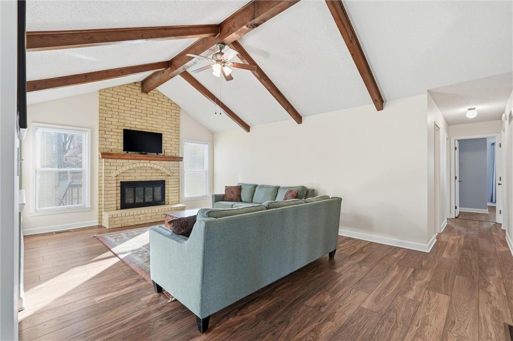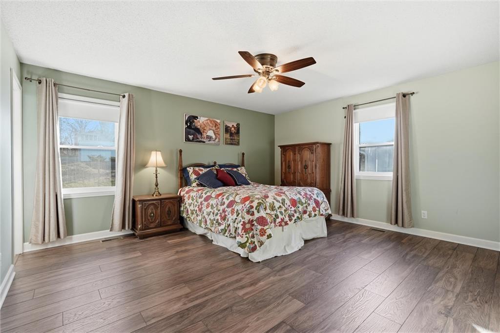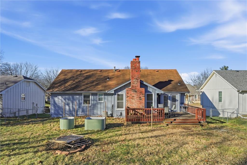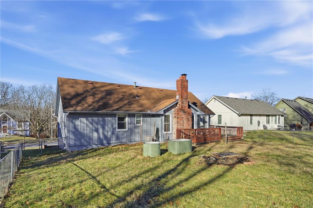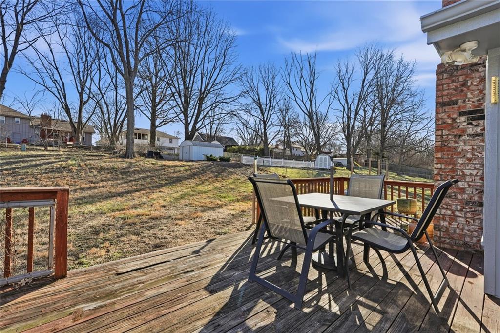 Beautiful, move-in ready split entry home in the coveted North Kansas City School District for $300,000! Step upstairs to enjoy the beautiful vaulted ceiling, box beams, brick fireplace facade and new luxury vinyl floors running seamlessly through the main floor. Open concept kitchen overlooks the living room with ample cabinetry and appliances to stay. Three spacious bedrooms on the main floor, updated hallway bathroom and en suite, and bonus non-conforming bedroom or office in the lower level. Freshly painted interior and exterior, as well as newly carpeted recreation room in basement ready for play. Fully fenced in backyard with a large shed for extra outdoor storage. Amazing location near modern amenities and great value you won't find anywhere else! Welcome Home!