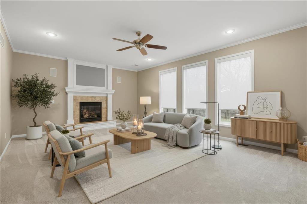 Priced to sell and better than new atrium split in the desirable Greyhawke subdivision of Smithville! This 4-bedroom home is move-in ready with brand new carpet and fresh interior paint throughout. Enjoy features you don’t get with new construction, including a fully fenced backyard and installed window coverings. The three car garage is divided and extra deep providing room for a recreation vehicle and larger vehicles. Basement has been recently finished providing extra space for entertaining. Located near Smithville Lake and its scenic trails, as well as shopping and downtown, this home offers the perfect blend of comfort, convenience, and outdoor lifestyle. Clean and move in ready for its next owner.
