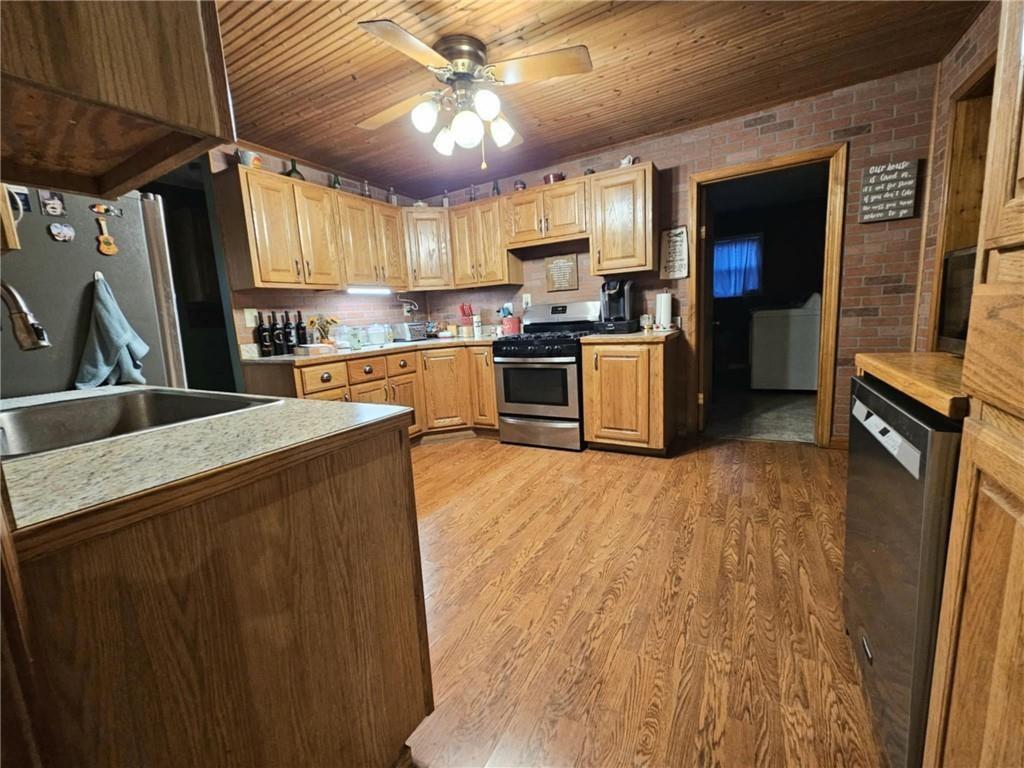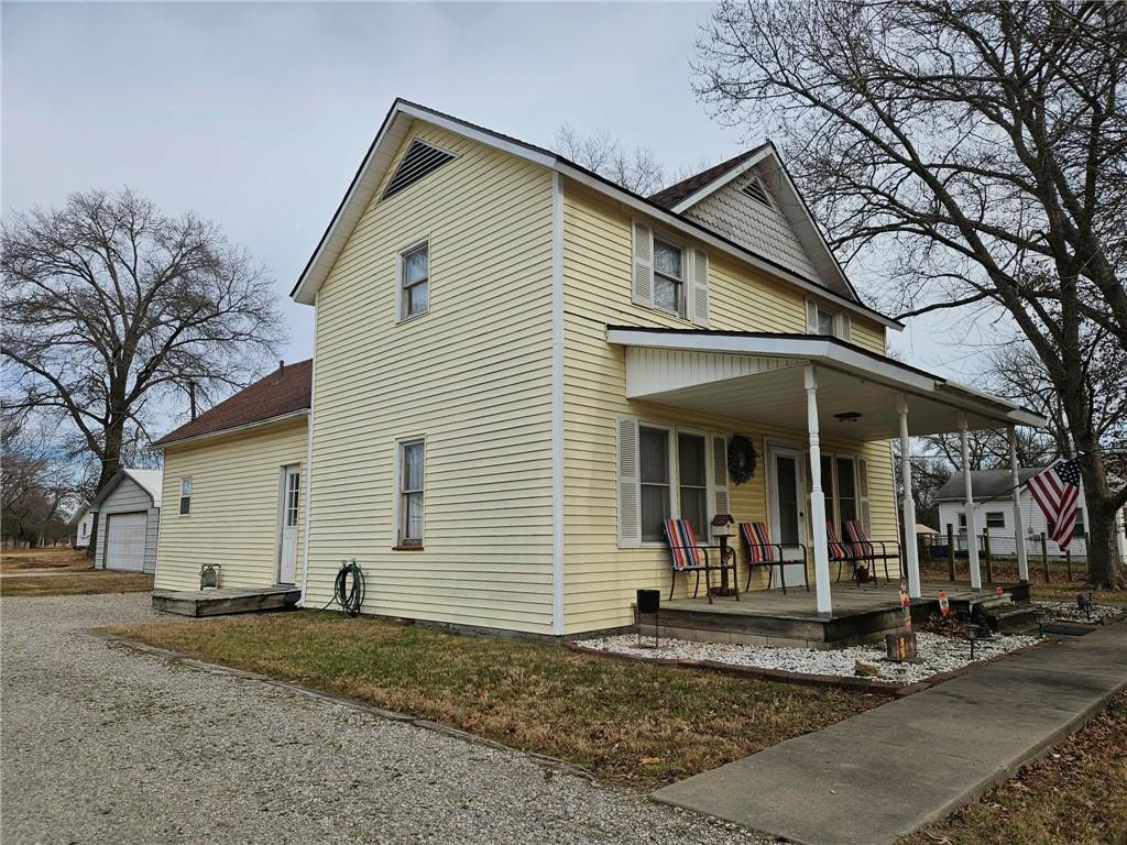 Welcome to 112 W Alberty Rd, a home that blends comfort, space, and everyday convenience in a great location convenient to the country club and Pittsburg. Whether you’re looking for your first home, your next move, or a smart investment, this property offers plenty of potential to make it your own. This home boasts a covered porch that spans the front of the home, providing cover from the elements. The large living room welcomes you home; stairs lead from the living room to two bedrooms, the smaller one is presently being used as an office. The larger bedroom has plenty of natural light, storage and access to the half-bathroom. From the living room, you access a large kitchen features solid wood cabinetry, stainless steel appliances and a tasteful wood ceiling. The kitchen is attached to the dining area, which offers a sliding glass door, providing the warmth of morning sunshine and access to the covered back porch and adjacent patio. The laundry room off the kitchen boasts storage and access to the main floor bathroom. The bathroom features a large, walk-in shower and storage space. An ample mudroom is off the bathroom and kitchen, near the back door a perfect landing place for your bags and shoes. Upstairs, you'll find two bedrooms; the smaller one is presently being used as an office. The larger bedroom has plenty of natural light, storage, and access to the half-bathroom. The large, shaded yard, 2-car garage, and additional outbuilding offer plenty of storage. New Roof added 2025 Call today to make this home yours!