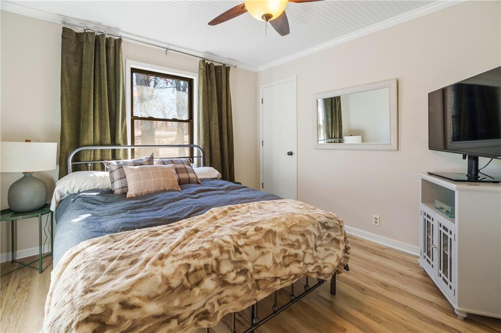 Lake Viking rare find with a boat slip at the Yacht Club. This property is situated on 1.3 acres near the South Entrance and offers a private, wooded setting with abundant wildlife and a treehouse-like feel. The home features 3 bedrooms and 3 bathrooms with numerous recent updates, including a new roof, new flooring, shiplap accent walls and ceilings, and fresh paint throughout. The open-concept kitchen includes freshly painted cabinets, quartz countertops, and comes fully equipped with appliances, including the washer and dryer. The primary bedroom offers a shower and a large window with peaceful views of the wooded lot. For those seeking a quiet retreat, the large covered and screened-in porch provides an ideal space to relax and enjoy the natural surroundings. The unfinished basement includes a pellet stove and offers excellent potential for a workshop or future finished living space. Additional features include a one-car garage. The sellers are open to offers on furnishings, and the boat is available for purchase separately.