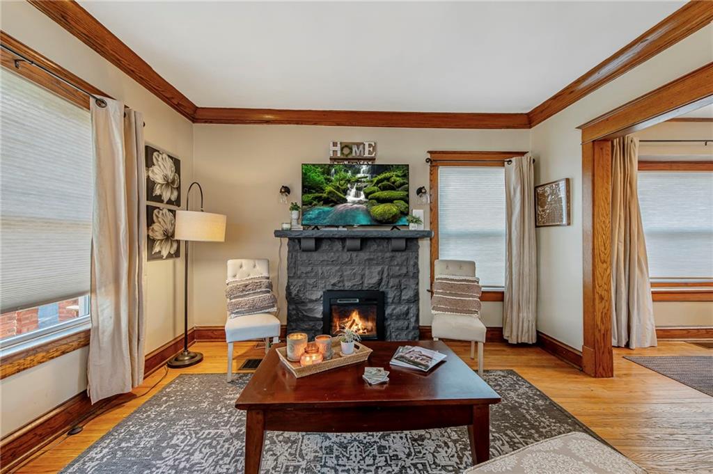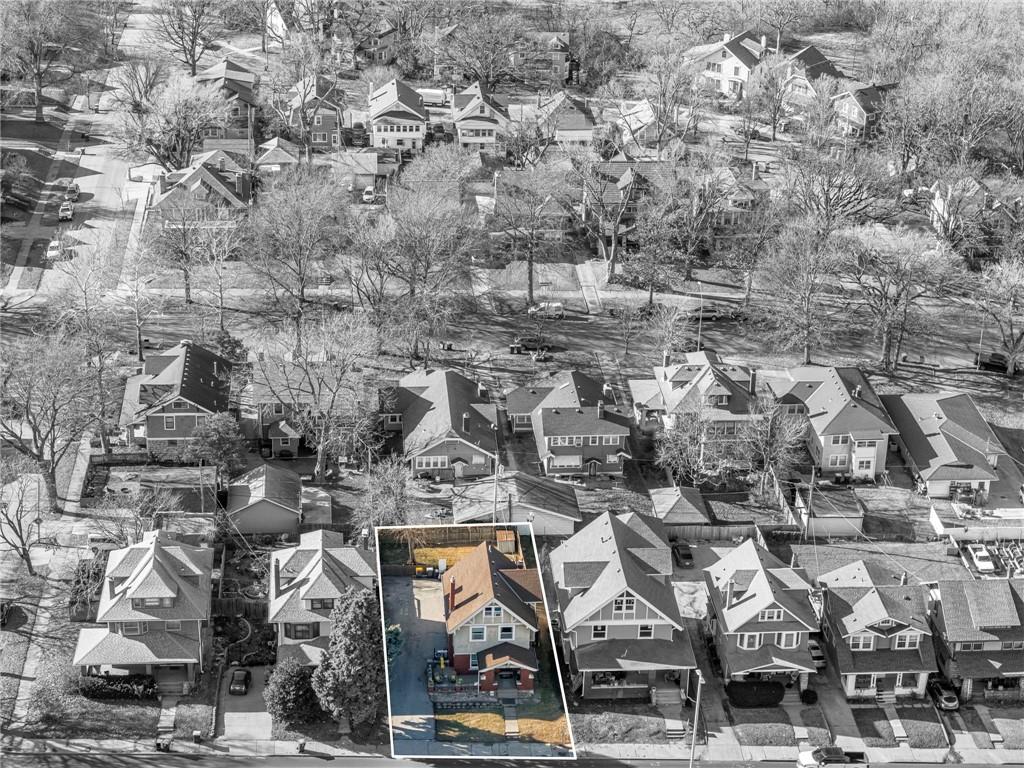 Step into the charm of this rare 1910 Kansas City home, where timeless character meets an unbeatable location near downtown, the Plaza, and across the street from Metropolitan Community College. Offering 4 bedrooms and 2.5 bathrooms, this property blends historic charm with spacious, functional living. From the moment you arrive, the inviting front porch with brick detailing welcomes you inside. The grand foyer showcases beautiful natural woodwork that continues throughout much of the home, from the staircase and trim to the stunning decorative windows. Hardwood floors add warmth and character while enhancing the home’s timeless architectural features. The main level features generous spaces ideal for entertaining. The light-filled living room includes a beautiful fireplace and flows seamlessly into the dining room, highlighted by large windows. The kitchen offers an eat-in option and plenty of space for everyday living. Bedrooms are thoughtfully arranged across the upper levels. The second floor includes three bedrooms and a full bathroom, while the third level features a spacious bedroom with its own full bathroom, perfect for a private retreat or guest suite. Outside, enjoy a lovely deck and fenced yard, ideal for relaxing or hosting gatherings. The extended driveway provides ample parking for multiple vehicles, a rare find for the area. With its character, space, and convenient location, this home offers a wonderful opportunity in the heart of Kansas City.