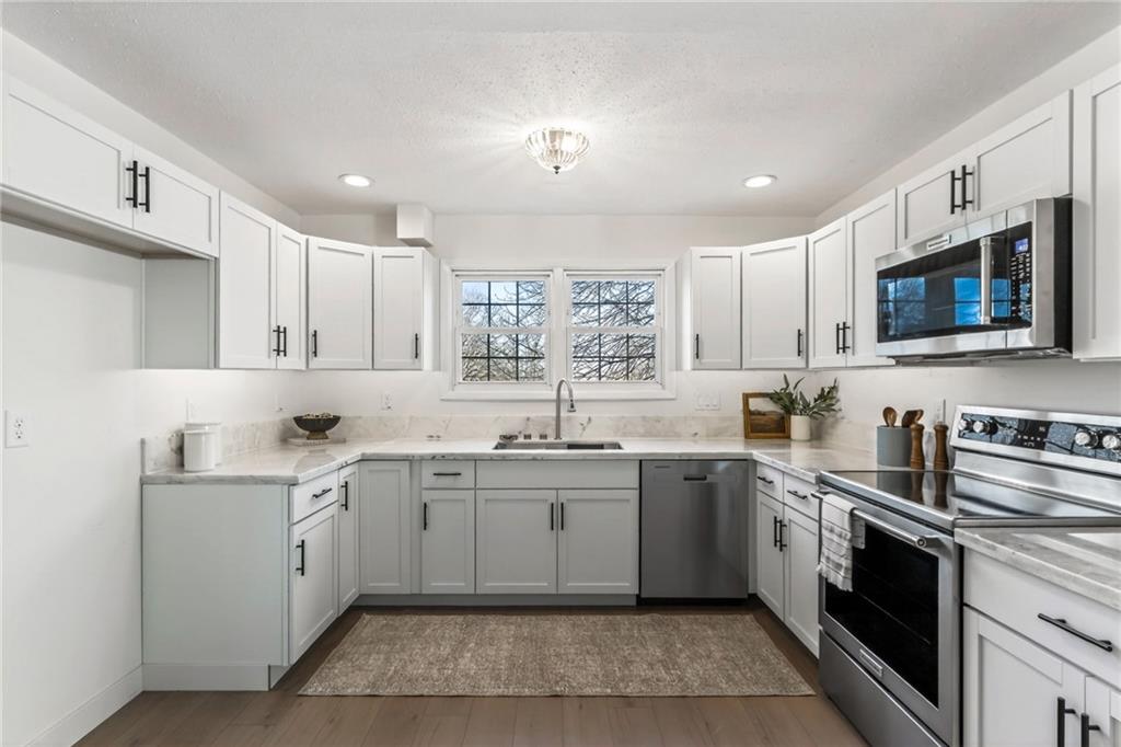 Sitting on over half an acre with an abundance of driveway and parking space, this fully remodeled home immediately stands out for its space, flexibility, and freedom—no HOA included. Whether you need room for extra vehicles, a trailer, or just love having space to spread out, this property delivers from the moment you arrive. Inside, everything has been thoughtfully updated. The brand-new kitchen is a true highlight with gorgeous countertops, all-new cabinetry, modern appliances, and a deep sink that’s both stylish and functional. New floors throughout elevate the entire home and truly are amazing—durable, beautiful, and cohesive. The main living area is filled with natural light and centered around the perfect fireplace, creating a warm, inviting space to relax or entertain. You’ll also love the built-ins, offering smart organization without sacrificing style. The main floor includes all three bedrooms, family room, entryway, eat-in kitchen, two full bathrooms, and a flex space that steps outside to your own private retreat. The backyard feels like a personal oasis when everything is green, with plenty of room to play, garden, or simply unwind. There’s a shed for additional storage and in the basement is an oversized garage that’s perfect for an extra car, a workshop, hobby space, or even finishing out into a man cave or separate office space. Low-maintenance vinyl siding keeps upkeep easy so you can enjoy the space instead of working on it. This home offers updates, land, storage, and versatility—all in one incredible package. You're not going to want to miss it