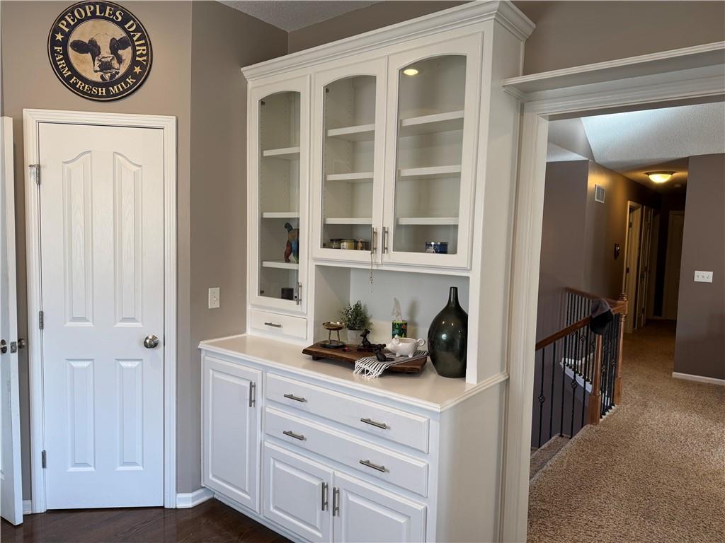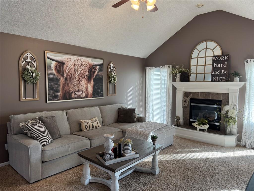 Welcome home to this beautifully maintained 3 bedroom, 2.5-bath residence offering space, style, and functionality throughout. The main level features soaring ceilings, abundant natural light, and a welcoming living room centered around a cozy fireplace- perfect for everyday living or entertaining. The kitchen is both stylish and functional with white cabinetry, granite countertops, stainless steel appliances, tile backsplash, and plenty of counter and storage space. The adjacent dining area opens to the deck, creating an easy flow for indoor-outdoor living. The spacious primary suite offers a peaceful retreat with a tray ceiling, generous closet space, and a private ensuite bath featuring a soaking tub and natural light from the glass block window. Two additional bedrooms and a full bath complete the main level. The finished lower level provides even more living space with a family room, second fireplace, half bath, and charming custom nook - ideal for a play area, or pet retreat. This level is perfect for movie nights, guests, or a home office setup. Enjoy the outdoors from the elevated deck overlooking the backyard, with stairs leading down to the patio- ideal for grilling, relaxing, or entertaining. Addition highlights include a 3-car garage, neutral color palette, and thoughtful finishes throughout. HOA amenities include a neighborhood pool, and a walking trail just steps away! This home is move-in ready with space to live, relax, and entertain- inside and out! Don't miss your chance to see this one in person.