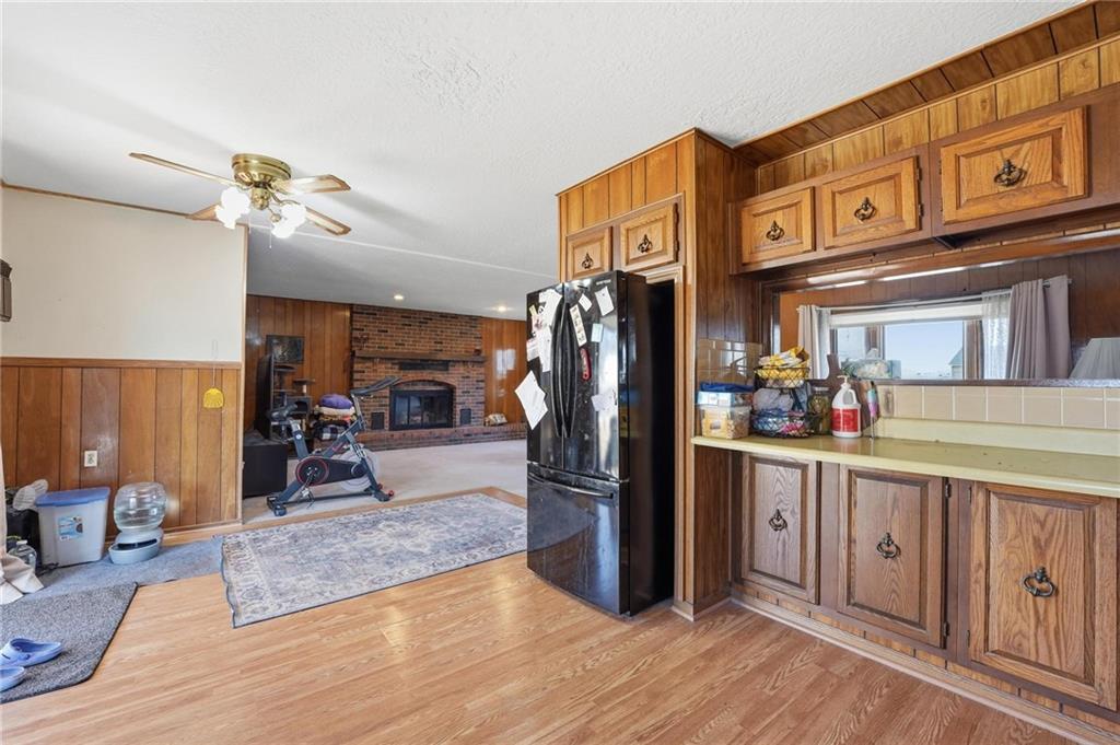 Welcome to this spacious, sprawling ranch nestled within the highly-rated Fort Osage School District! Circle driveway! This wonderfully functional home offers the charm, warmth, and space buyers love — starting with beautiful hardwood floors and a striking wood-burning fireplace that anchors the main living area. The layout flows easily into a large kitchen featuring real wood cabinetry, abundant storage, and generous countertop space — perfect for cooking, entertaining, and everyday living. The primary suite offers the convenience of its own full private bathroom, a feature often hard to find in homes of this era. The finished lower level provides valuable additional square footage, complete with interior access, two non-conforming bonus rooms, and space ideal for home offices, hobby rooms, or guest accommodations. Outside, the home sits on a spacious lot with a large, flat, fully fenced backyard — perfect for pets, play, gardening, or future outdoor upgrades. Enjoy a cup of coffee on the covered back patio. This property combines comfort, functionality, and location in a hard-to-beat package. A must-see for anyone looking for a solid ranch home with room to grow!