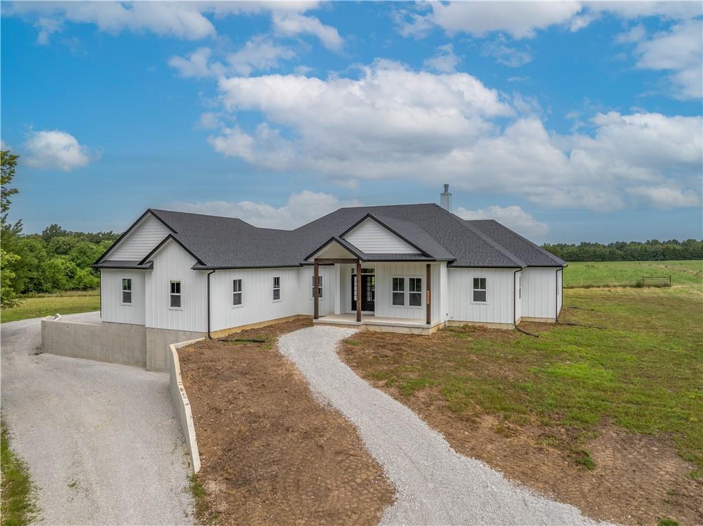 $10,000 SELLER CREDIT AVAILABLE — apply it toward a rate buy-down, closing costs, or however you choose. Welcome to this brand-new custom residence set on 5 acres—crafted with intention, defined by quality, and created for buyers seeking space, craftsmanship, and freedom. Offering over 3,300 sq ft, this 5-bedroom, 3.5-bath home plus dedicated office sits on unrestricted acreage, providing privacy, flexibility, and room to live without compromise. Large windows fill the home with natural light, while the open-concept layout creates effortless flow for both everyday living and entertaining. The heart of the home is a chef-inspired kitchen featuring custom cabinetry, an oversized island, double ovens, quartz and granite countertops, and a walk-in pantry. The kitchen opens seamlessly to the dining and living areas, creating an inviting setting ideal for gatherings or relaxed daily living. The primary suite is a true retreat, offering a spa-inspired bathroom with a freestanding soaking tub, walk-in shower, and generous closet space. Secondary bedrooms are spacious and flexible, well-suited for guests, hobbies, or creative use, while the private office provides separation for focused work. Built for performance as much as beauty, the home includes a tankless water heater, dual-fuel HVAC system, and cellulose insulation designed for year-round comfort and efficiency. A 1,000 sq ft garage provides ample room for vehicles, tools, and hobbies. Outside, the acreage offers freedom—space to entertain under the open sky, enjoy quiet mornings, or add a future shop or outbuilding. No HOA. No restrictions. This home delivers scale, quality, and flexibility—ready to support both today’s lifestyle and long-term enjoyment. Schedule your tour today!