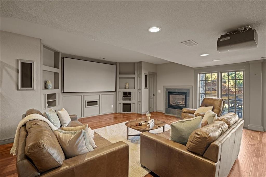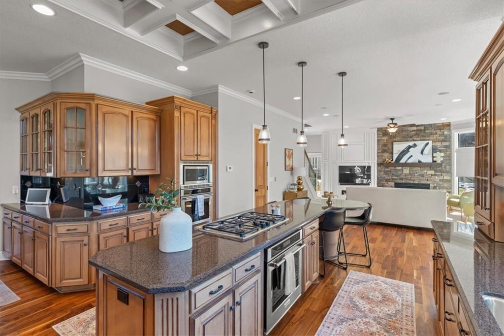 Beautiful design meets convenience and function in this architectural showpiece in the coveted Riss Lake community. With only three of these custom homes ever constructed, this Mark Bolling home will take your breath away. A hand painted mural, hidden children's nook, and 3 separate outdoor spaces, this home is truly special and not like anything you have seen at the lake. Earthy stone accent walls, beautiful wide plank walnut floors, multiple living and dining spaces and a grand kitchen make the main floor great for intimate evenings at home or perfect for entertaining. All bedrooms are spacious and privately appointed with their own en-suite baths. The owner’s suite is a true retreat, offering spa-caliber finishes including an oversized double walk-in shower and a secluded martini deck for quiet relaxation. The walkout lower level is designed to impress, featuring a full second kitchen, expansive recreation and entertainment area with a large projection screen, a dedicated workout room with sauna, and a rare suspended garage ideal for additional storage. Throughout the approximately 5,500 square feet, you’ll find custom built-ins, smart home technology by Applause Home Audio and Security, and numerous recent updates—including new carpet and new windows—enhancing both Room to spread out but a layout that still feels cozy is what makes this really feel like the perfect family home. Step outside and enjoy unparalleled access to the amenities that define Riss Lake living. Why maintain a pool when the neighborhood saltwater pool, tennis courts, and playground sit just beyond the back door, while the community’s 135-acre recreational and fishing lake is only two blocks away. Architecturally distinctive, and impeccably crafted, this home represents a rare chance to own something truly special.