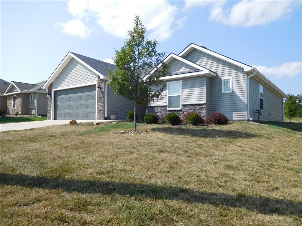 Beautiful home! Great location! Enjoy easy living with maintenance free vinyl siding with beautiful stone accent. No stairs, and extra wide door ways! Very open and inviting main floor. Kitchen offers gorgeous granite, Chefs dream island and oversized walk-in pantry with floor to ceiling shelves. custom cabinets, upgraded wood flooring and custom installed blinds. All 3bedrooms have walk in closets. Come enjoy the view that has you feeling like the country with nice green space behind and installed sprinkler system. Laundry is a true room to accommodate full size washer and dryer.