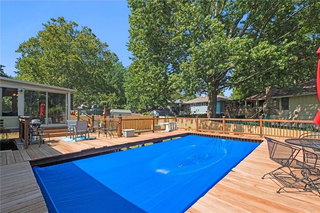 Beautifully cared for, one-owner 3-bedroom, 2.5-bath split-entry home located at the end of a quiet cul-de-sac. Thoughtfully maintained throughout, this home offers a comfortable blend of privacy and everyday living in an established neighborhood. The main level is bright and inviting, filled with natural light and open to a spacious sunroom overlooking the backyard. This versatile space is ideal for year-round enjoyment and adds valuable additional living area. From the sunroom, step out onto the large deck and above-ground pool—perfect for relaxing or entertaining. A newer fenced yard provides added privacy and convenience. The finished lower level offers a cozy family room featuring a pellet stove, along with a convenient half bath, making it a great space for movie nights, casual gatherings, or everyday use. A newer front porch enhances curb appeal and offers a welcoming place to unwind. With pride of ownership evident throughout and flexible living spaces inside and out, this home is ready for its next chapter. Schedule a showing and come see how easily this house could feel like home.