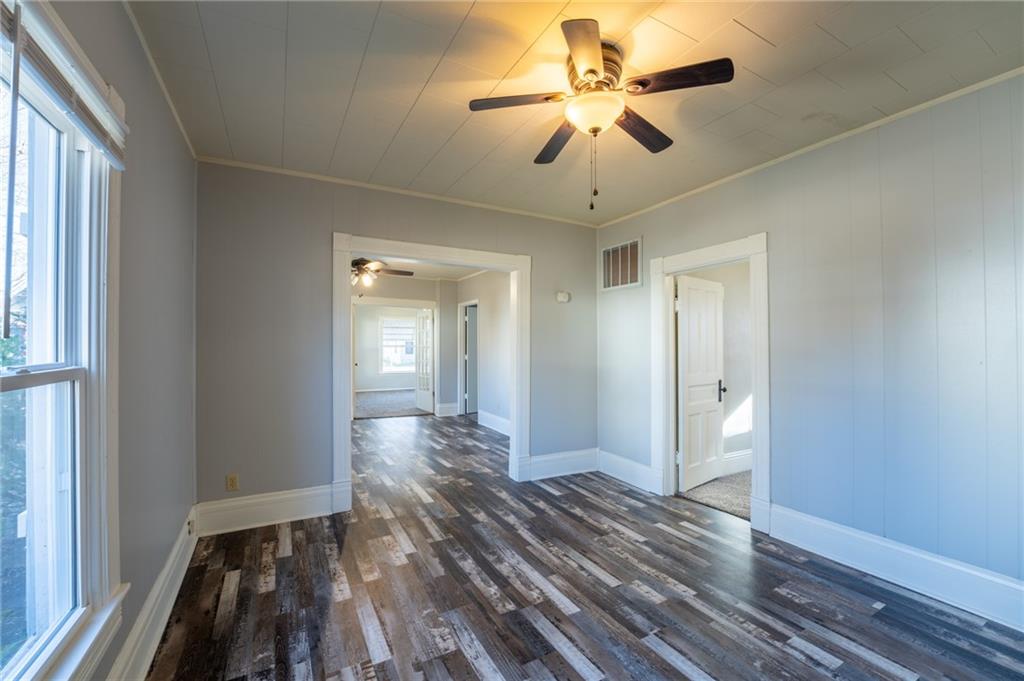 Move Right on in to this Charming 3 Bedroom Home on a Corner Lot! Brand New Windows, New Flooring Throughout, Newer Central Heat & Air, Walk Down Basement/Cellar, Walk Up Attic, Covered Front Entry and a Covered Back Patio. Living Room, Dining Room, 3 Bedrooms, Kitchen, Bathroom, and a Mud/Pantry Room. All of this with a Fully Fenced Backyard and a Detached Garage Too!