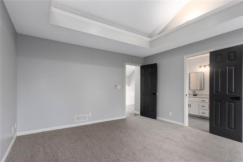 You’ll fall in love with this beautifully updated home featuring a wide-open floor plan and soaring vaulted ceilings that create a bright, spacious feel throughout. Nearly every detail has been thoughtfully refreshed, offering a truly move-in-ready experience. The stunning Great Room showcases exceptional hardwood flooring that flows seamlessly through the living, dining, and kitchen areas—perfect for both everyday living and entertaining. The gorgeous kitchen is designed to impress, featuring wraparound countertops, abundant workspace, and a charming breakfast area ideal for morning coffee or casual dining. Retreat to the inviting primary suite, complete with a walk-in shower, double vanity, and spacious walk-in closet. Convenient main-level laundry adds to the home’s functionality, along with additional laundry hookups in the oversized secondary bedroom, which also offers a flexible sitting area—perfect for guests, multi-generational living, or a private retreat. Two additional bedrooms complete the second level while the finished basement includes a fourth conforming bedroom with its own walkout access, providing excellent space for guests, a home office, or recreation. Step outside to enjoy the freshly landscaped yard, featuring a fenced area for pets and a separate enclosed garden space ready for spring planting. A two-car garage and extended driveway offer ample parking and convenience. All that’s left to do is move in and make it your own.