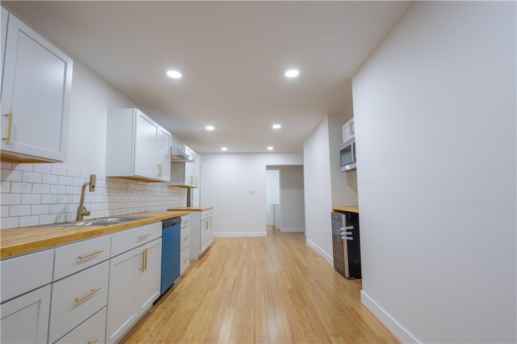 Welcome to this charming, fully remodeled home! Discover your happy place in this spacious property featuring 3 bedrooms, 2 full baths, and 2 non-conventional bedrooms on the lower level. The kitchen features butcher-block countertops and new appliances, with space for dining. The large master bedroom includes a full bathroom. Down the hallway, you'll find two additional bedrooms and another full bathroom, complete with a tub spacious enough to swim in. Main floor laundry adds convenience to the main level, along with a covered back patio and an enclosed entryway. The additional non-conventional bedrooms on the lower level offer versatile living space that can be used for storage, a gym, or crafting. Throughout the home, all areas have been updated for an easy, low-maintenance lifestyle. Recent updates include new electrical, plumbing, flooring, an electric HVAC system, siding, and gutters. The fenced backyard is conveniently close to the detached 2-car garage, which features a new concrete floor and new garage doors. Don’t miss out on this opportunity, it's priced to sell! Schedule your showings today.