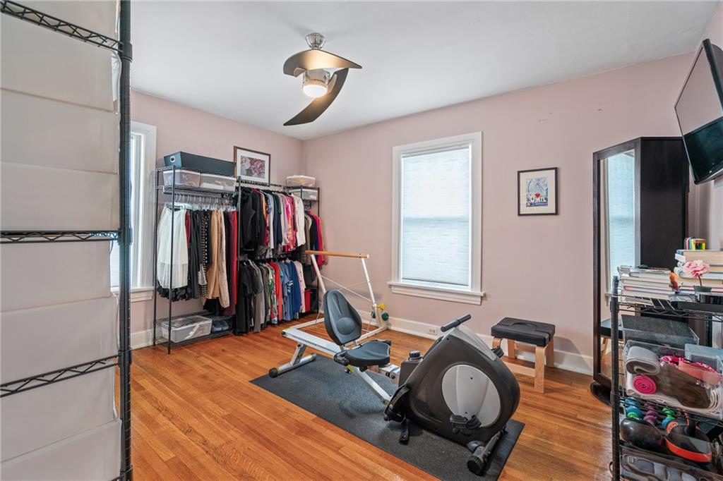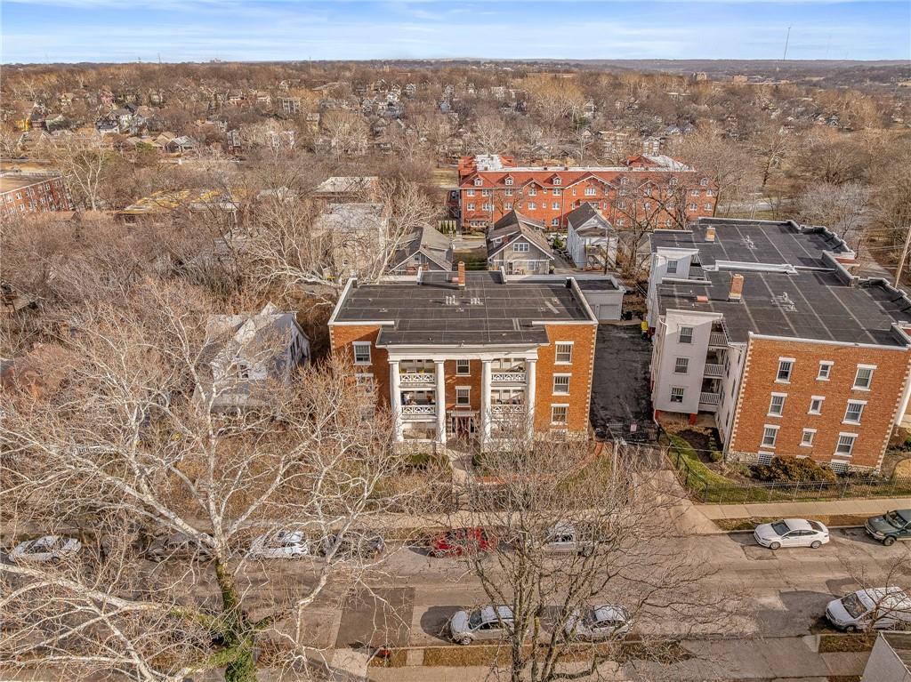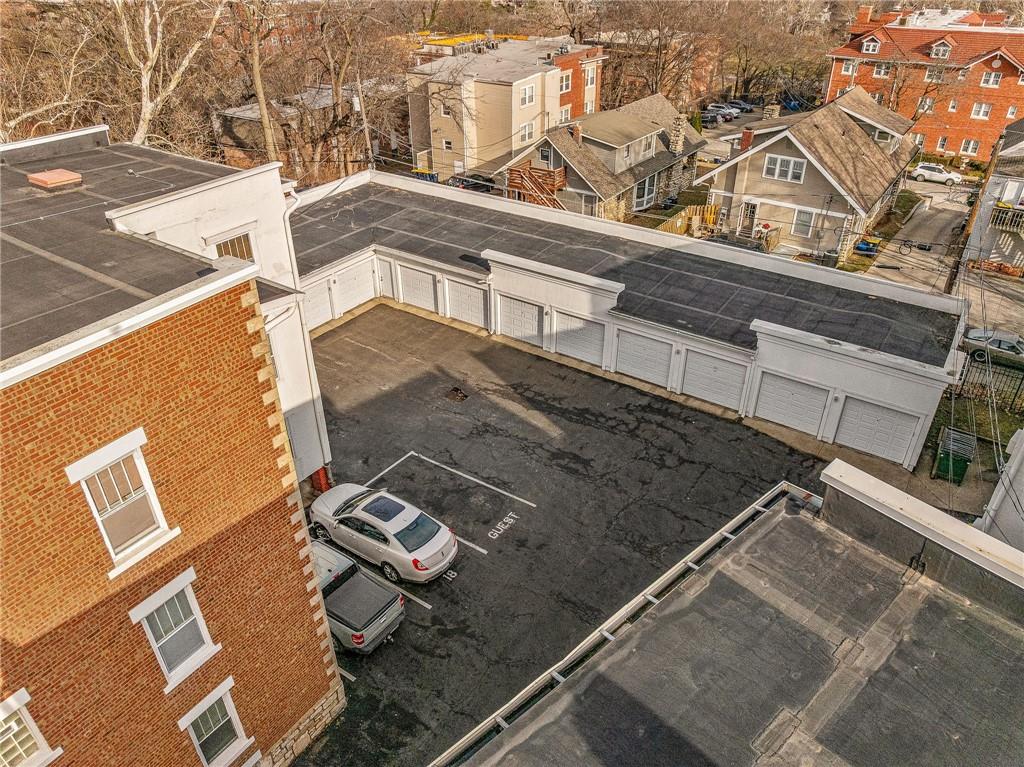 Welcome home to this charming 2-bedroom, 1-bath condo nestled in the heart of Southmoreland. Located within a gated community this home offers both privacy and convenience, complete with a rare 1-car detached garage, plus access to a community garage for dedicated bike storage. This second story walk-up unit provides both comfort and functionality. Original functioning windows add timeless character, while custom top down/bottom up blinds in all but one room provide flexible light control and privacy. The versatile bonus room located off the back porch provides the perfect space for extra storage(in addition to the basement), an office, or a creative studio-whatever suits your lifestyle. Step outside to your covered balcony, an ideal spot to enjoy morning coffee, or unwind in the evening. Enjoy unbeatable walkability with a streetcar stop just 4 blocks away. You're also within walking distance to the Nelson-Atkins Museum of Art, Kemper Museum of Modern Art, KC Art Institute, the Plaza, and Westport-placing culture, dining, shopping, and entertainment right at your doorstep. This condo offers the perfect blend of charm, location, and low-maintenance living in one of KC's most vibrant neighborhoods.