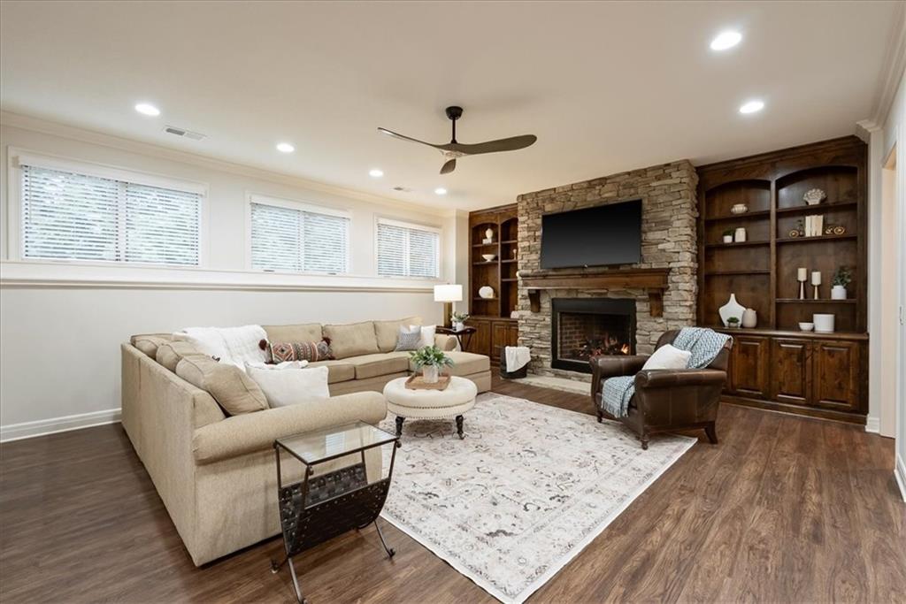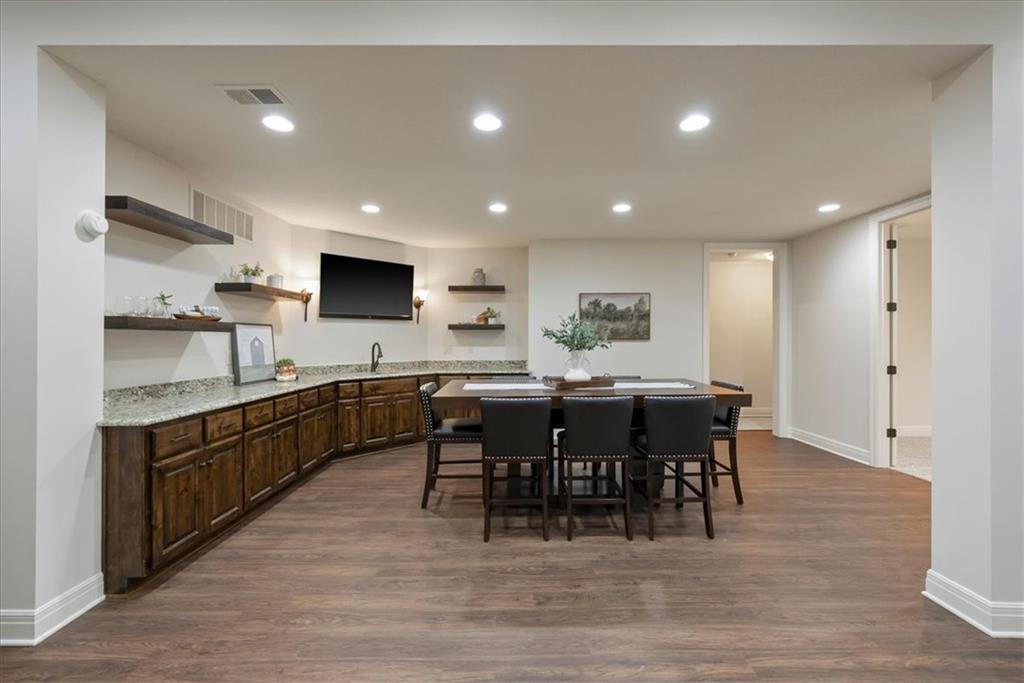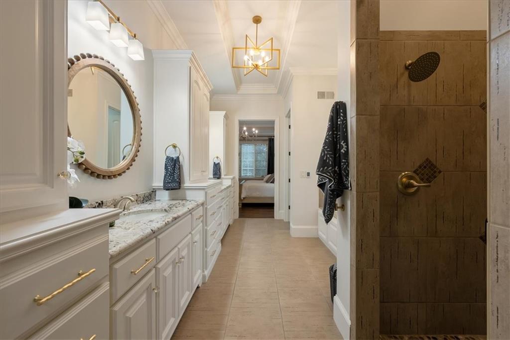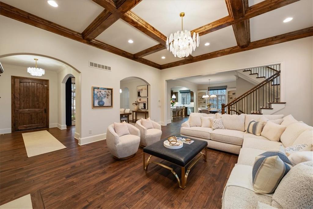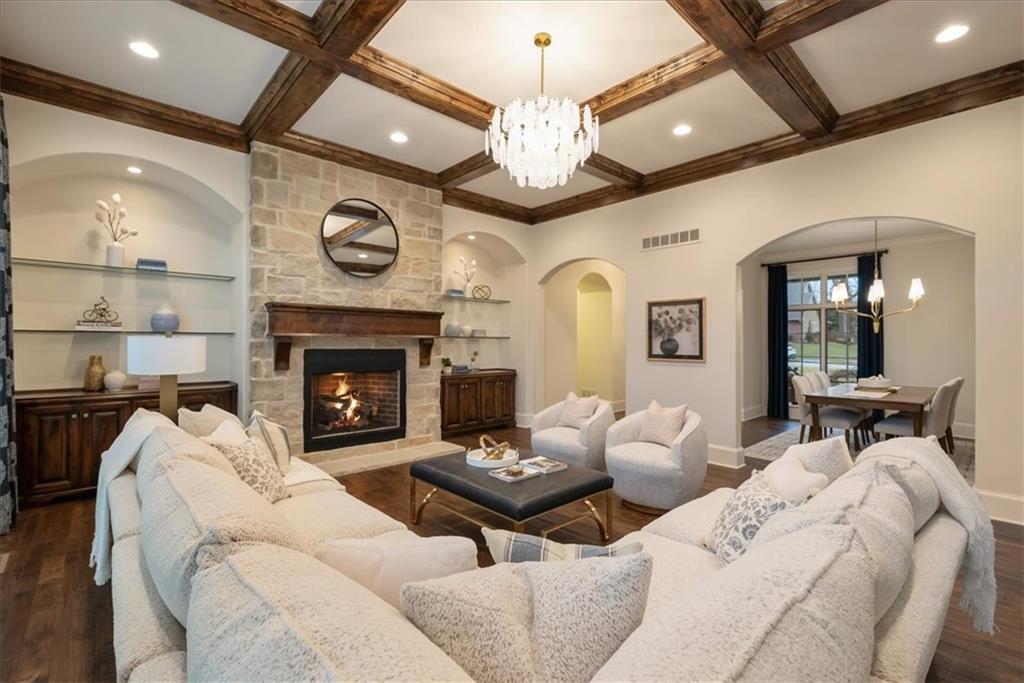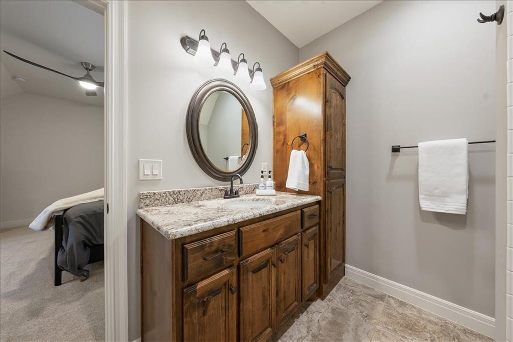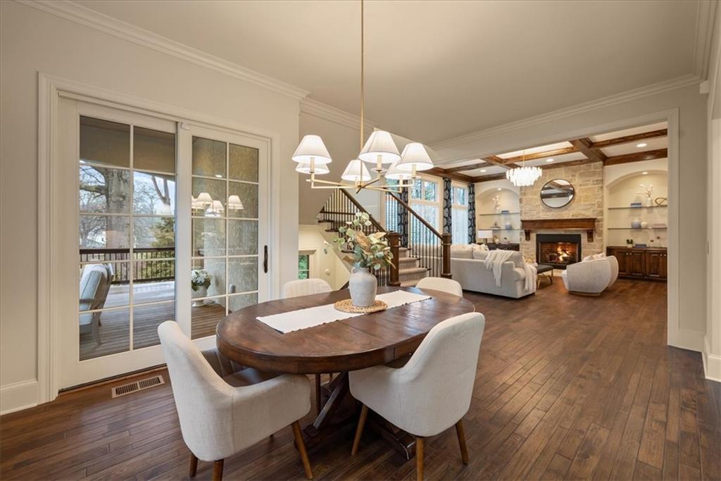 Location, Quality & Luxury blend seamlessly in coveted Old Leawood, this exceptional nearly new home combines timeless design w/carefully curated upgrades. Striking stone & stucco exterior & welcoming front entry. Thoughtfully designed space exudes warmth, comfort & sophistication. The GRAND great room—boasts soaring ceilings, exposed wood beams & rich wood flooring—a stunning & inviting space to gather, relax or entertain. The quality of construction & upgraded finishes remain consistent from the 1st level throughout the home! The 1st floor primary suite w/double vanity, large shower w/2 showerheads & Large walk-in closet w/laundry room—an ideal design choice!! Striking Kitchen balances warmth & modern style. Brand-new quartz countertops & backsplash, new gold faucets & accents & w/induction cooktop add a fresh experience! Well designed “flex” storage room w/second refrigerator & work space give options for hidden prep, catering, or a discreet home office. Walk-in pantry, half bath & 2 well-planned mud areas (including a walk-in mud closet tucked behind a pocket door). BONUS large Den, TV Room or could be 2nd main level Guest Bedroom tucked behind kitchen. 3 Bedrooms up—w/walk-in closets w/3 full baths, shared laundry room & a cozy loft ideal for reading, studying, or gaming. The daylight LL mirrors the quality & character of the main floor, featuring 10-foot ceilings, wide open staircase, & an expansive family room w/beautiful stone fireplace, built-ins & wet bar. 2 more bedrooms (or office spaces), full bath, & dedicated workout room w/cushioned flooring & climbing wall & ample unfinished storage. Outdoor living is equally impressive. Covered porch w/Fireplace invites year-round enjoyment, w/outdoor gas firepit, iron-fenced backyard, In-ground Irrigation & distant neighbor views create a private, peaceful setting. This is a home where lifestyle, craftsmanship & location align—carefully designed, beautifully maintained & WELL worth the visit.