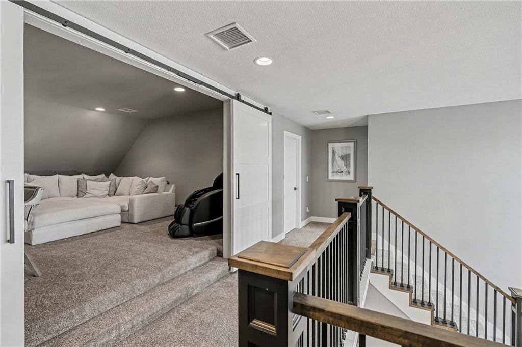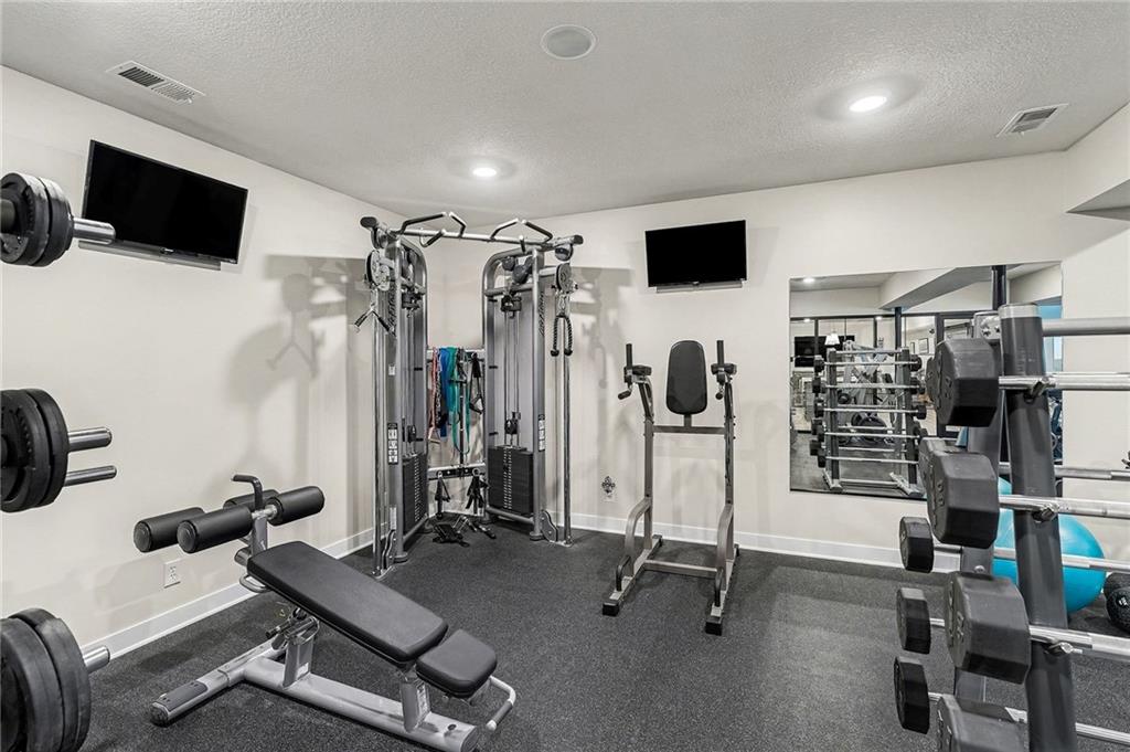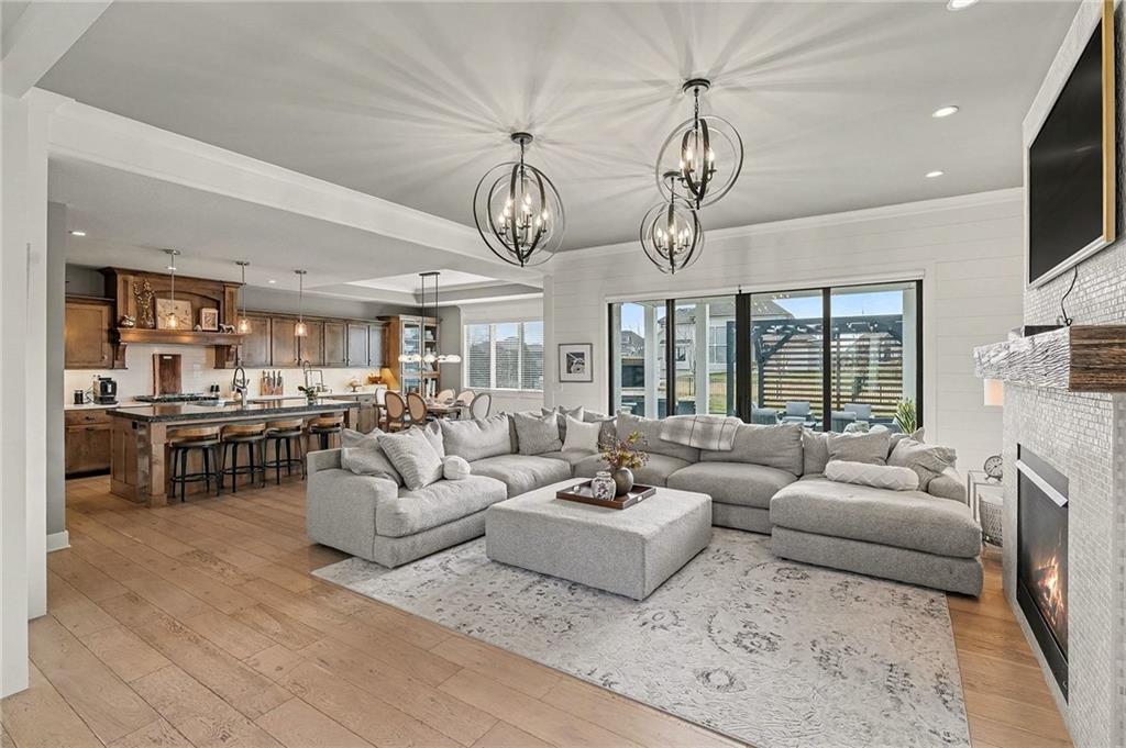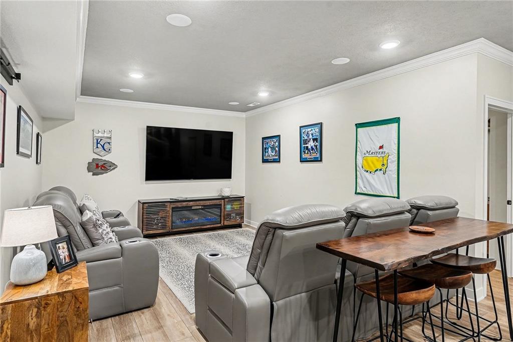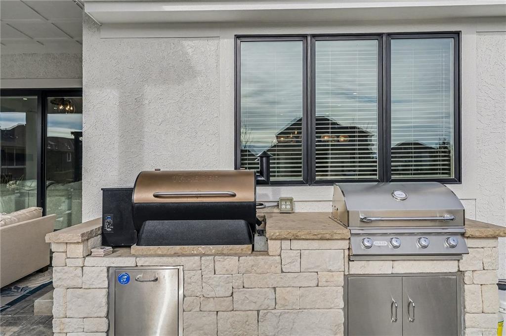 Built by Homes by Chris, this extraordinary 1.5-story home is a blend of timeless elegance, thoughtful design & high-end finishes. From the moment you arrive, elevated lighting, materials & hardware set the tone for refined living. The open-concept main level includes a gourmet kitchen with a large walk-in pantry and a double refrigerator/freezer. The living room features a fireplace & sliding doors connecting the interior to the outdoor living spaces. The elegant primary suite on the main floor offers a serene retreat with a spa-inspired bathroom. A 2nd main-level bedroom provides flexibility for an office or guests. A half bath & mud room complete the main floor. Upstairs, you’ll find 3 bedrooms, each with an ensuite bath & walk-in closet. This level also includes a laundry room & loft that can be closed off for added privacy. The finished basement (2022) is truly next level—featuring a large commercial-grade gym & an infrared sauna, all behind a glass wall. Add'l highlights include a kitchenette with built-in ice maker, full-size refrigerator, microwave & disposal; a rec room with theater seating; a flex space for a non-conforming bedroom or home office; & a full bath. Step outside to your private backyard oasis—includes a covered patio, pergola with add'l seating, fireplace, fire pit area & built-in gas grill & Traeger smoker. A bocce court, trees and privacy walls create a secluded, resort-like atmosphere. As a resident of Staley Farms, you’ll enjoy premier amenities including a fitness center, indoor basketball/pickleball court, swimming pool, outdoor tennis & pickleball courts, sand volleyball, walking trails & the option to join the award-winning Staley Farms 18-hole golf course. The home is located within the highly regarded Staley High School boundaries and just 15 minutes from downtown, KCI, Liberty or Zona Rosa. Don’t miss the opportunity to experience Staley Farms living—schedule your private showing today and make this stunning home your own.