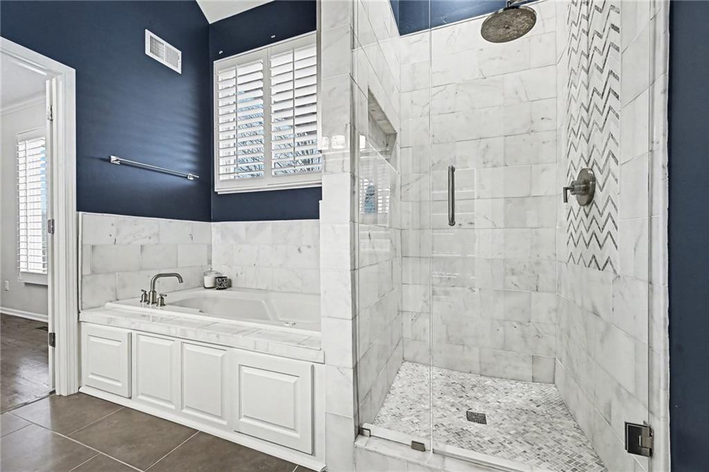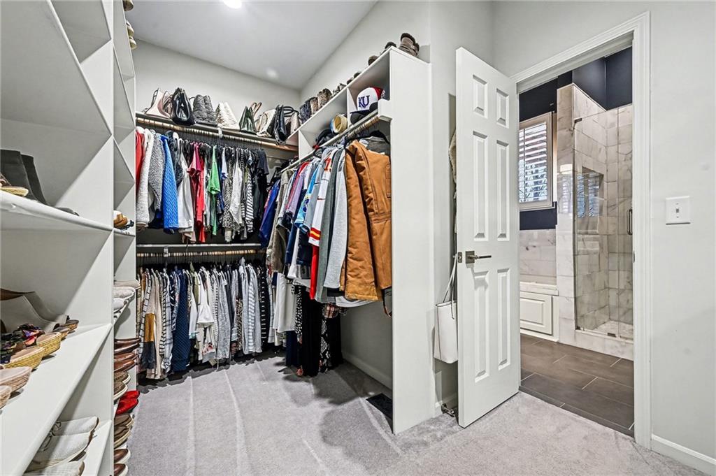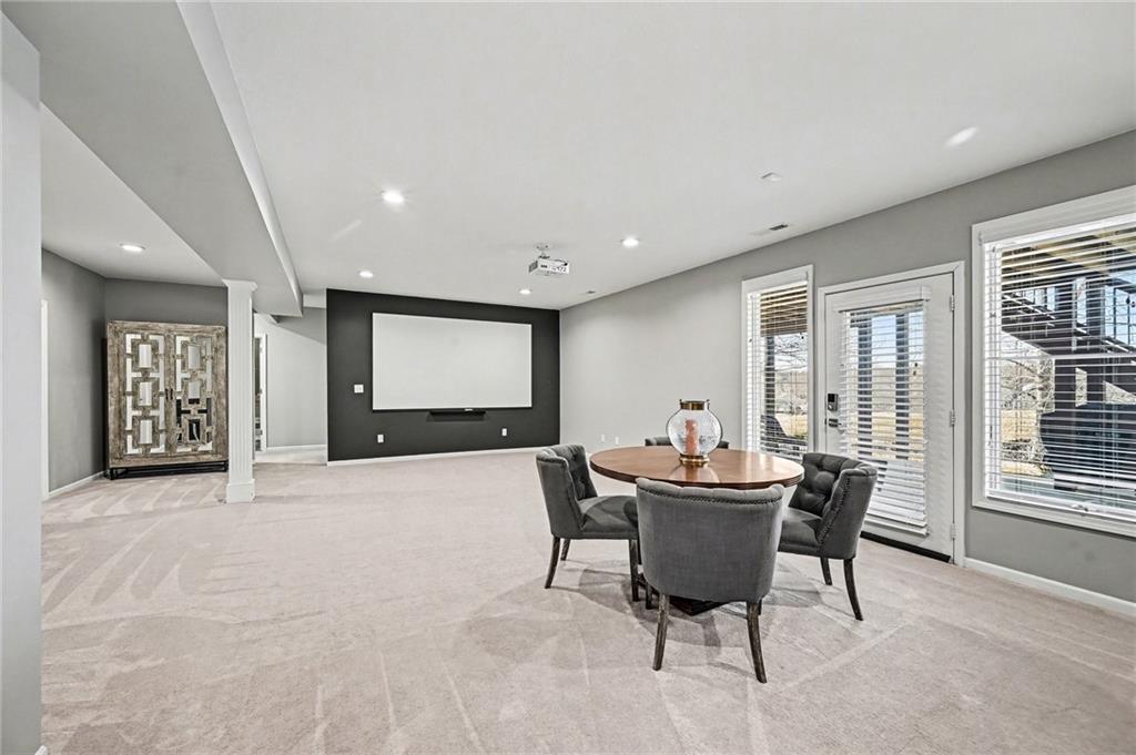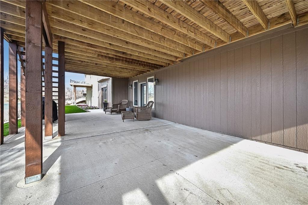 Stunningly remodeled Ranch/Reverse spans over 3,700 sqft. with designer finishes and showcases a bright, open layout highlighted by 11' ceilings and expansive floor-to-ceiling windows with plantation shutters framing a serene neighborhood pond. The main level features the Primary bedroom and a large second bedroom. The Primary suite has a custom closet system with built-in drawers and shelving. The chef's kitchen has a 7' island for dining or entertaining, new cabinets, marble countertops and high-end appliances and a large pantry. Just off the entry you can go through double doors to the home office or formal dining room with custom built-ins. Newly refinished hardwood floors throughout the main level, designer lighting, updated tile fireplaces and fresh interior/exterior paint complete the main living areas. The fully finished lower level includes two additional bedrooms with double closets, a full bath, a spacious family/theater room, two generous storage rooms, and a dedicated room ideal as a home gym, craft space or man cave and includes double exterior doors to the backyard. Outdoors is an entertainer’s dream with a beautifully landscaped yard with concrete decorative edging, sprinkler system, new concrete sidewalk to front entry, large deck with pergola and a covered patio overlooking the stocked pond and views of gorgeous sunsets. The oversized three-car garage features epoxy floors and an extra-deep bay for your truck or SUV. Located in a friendly community within the award-winning Piper school district and just minutes from The Legends Shopping area, close major highways, and only 20 minutes the airport and downtown. This home has been meticulously finished and maintained and has all of the extras you won't find in new construction.
