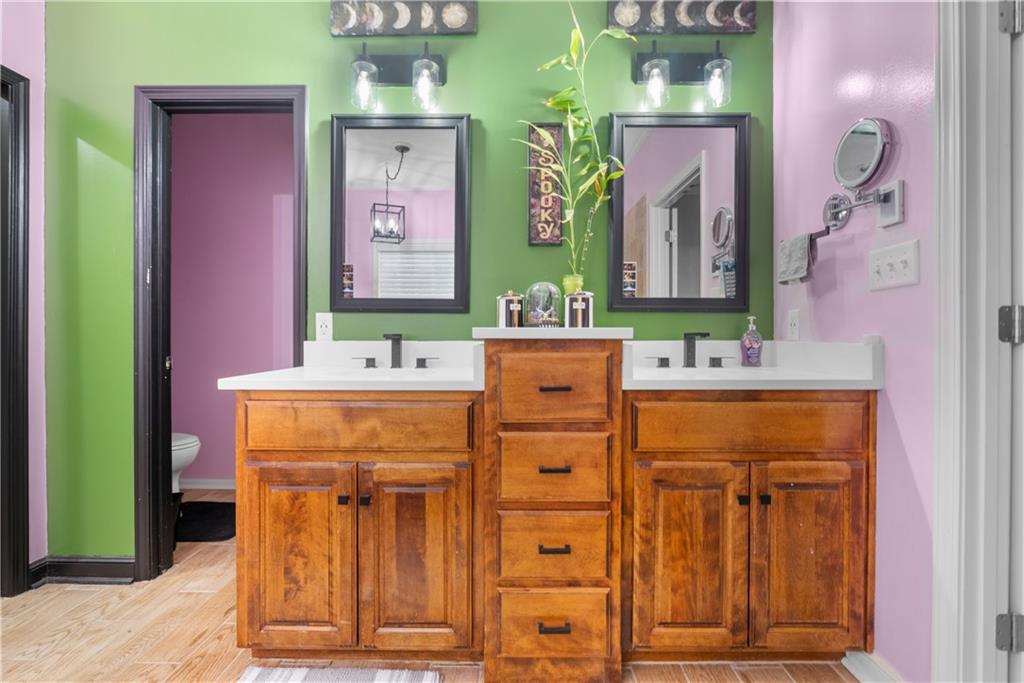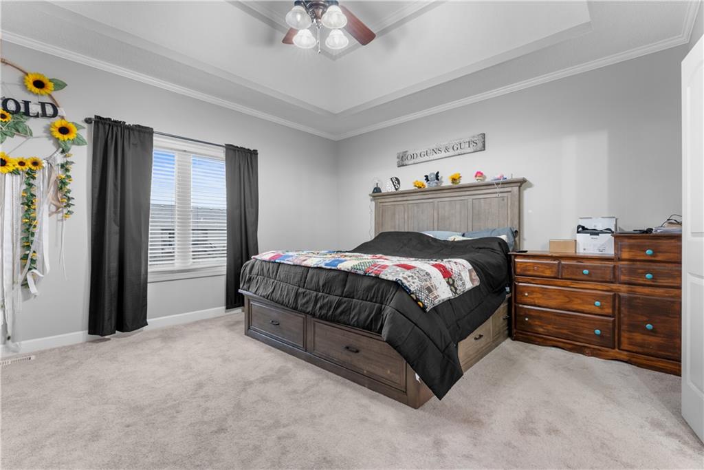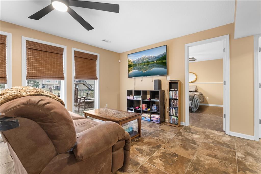 This 4 bedroom, 2.5 bath reverse ranch offers the perfect blend of open-concept living and thoughtful upgrades throughout. The main level features a spacious layout ideal for gatherings, highlighted by granite countertops, a large laundry room on the main floor, and a private primary suite. The primary bath is a true retreat with heated floors, whirlpool tub, a large walk-in closet and shower designed for relaxation. The finished walkout basement expands your living space with three additional bedrooms, a Jack & Jill bathroom, plenty of storage, a bar, and an impressive wine cellar perfect for hosting or unwinding at home. Step outside to an entertainer’s dream backyard featuring a large patio with a built-in gas fireplace and cooktop, ideal for BBQs and evening get-togethers. The maintenance-free composite deck adds even more outdoor living space, and for those chilly Missouri nights, enjoy the hot tub that stays with the home. Located in the welcoming Rosehill neighborhood, residents enjoy access to a community pool and a great sense of community. This home checks every box for comfort, function, and lifestyle don’t miss your opportunity to make it yours.
