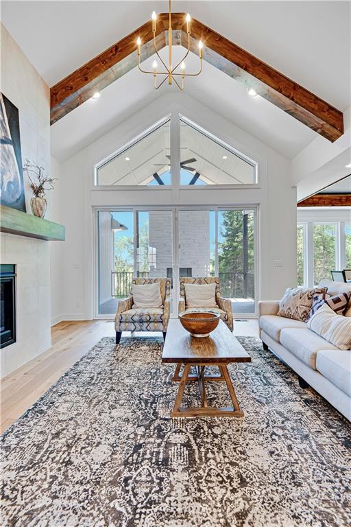 Experience refined luxury in The Bayberry by JFE Construction, a stunning villa designed for elevated everyday living. An impressive 8-foot double front door opens to soaring ceilings, dramatic wood beams, and expansive walls of windows that flood the great room with natural light. Oversized sliding doors lead to a covered deck with a stone fireplace, perfectly positioned to overlook tranquil greenspace—ideal for both relaxing evenings and effortless entertaining. The designer kitchen is as functional as it is beautiful, featuring a large quartz island, stainless steel appliances, rich wood flooring, and an oversized walk-in butler’s pantry. The primary suite offers a private retreat with a freestanding soaking tub, double vanity, zero-entry shower, and a spacious walk-in closet. A second main-level bedroom or office provides flexible living options. The finished lower level expands the home’s versatility with a family room, bar area, game space, two additional bedrooms, and a full bath—perfect for hosting guests. Throughout the home, exquisite trim work, wood accent walls, bold black accents, and thoughtful architectural details elevate every space. Located in Canyon Creek Forest, a luxury maintenance-provided, free-standing villa community, this home offers a carefree lifestyle with lawn care and snow removal included—while enjoying all that Lenexa has to offer. Estimated completion is June 2026, with time remaining to make select design choices and personalize this exceptional home. Photos are of a former model and may include upgrades not included in the price. Don't miss out on this one. It is going to be a stunner!!