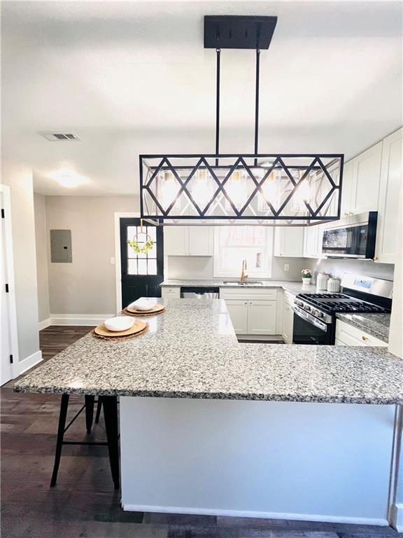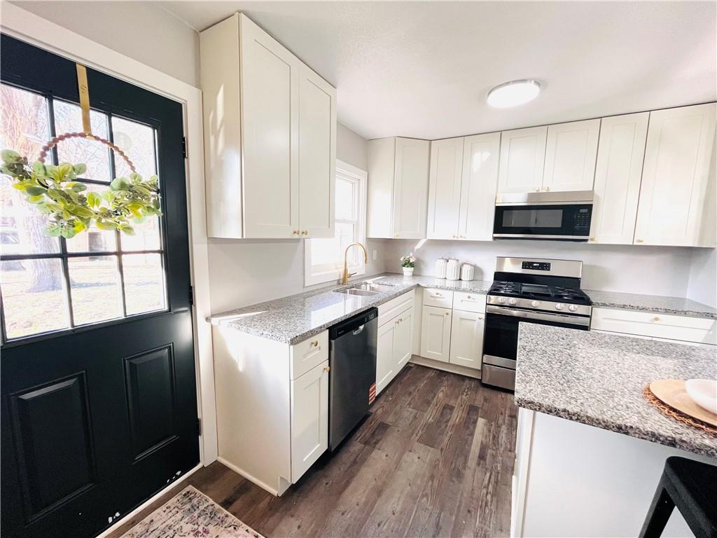 Completely remodeled ranch home with so much NEW! Welcome home to one level living with NEW kitchen with white cabinets, granite countertops, undermount sink, stainless appliances (dishwasher, gas 5 burner stove, microwave) and open to the living room. New luxury low maintenance vinyl plank flooring throughout, fresh paint, new solid wood doors with black hardware, new heating and central air conditioning system, brand new gorgeous bathroom with oversized tile shower and extra storage. Deep closets in the bedrooms with organizing systems and convenient laundry near bedrooms. Large nearly 1/4 acre privacy fenced yard with dry shed in quiet neighborhood near shops, schools and parks.