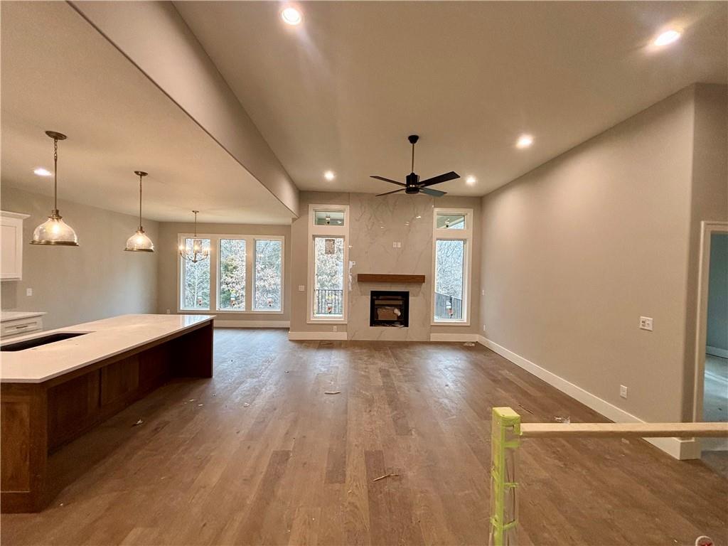 North Creek's newest Reverse 1.5 sty, the Ashton II by Kevin Higdon Construction gives you everything you love from our popular Ashton plan on a larger scale. The impressive open floor plan offers plenty of room for entertaining or just hanging with the family. Generous bedroom sizes including the main level primary suite with stunning en-suite bath and incredible closet space. The spacious kitchen will make cooking a joy with the large quartz countertop island, beautiful combination of stained and painted cabinetry plus large pantry. Enjoy stepping out onto the covered deck or patio after dinner to enjoy the serene setting backing to trees. Or perhaps move downstairs and watch a movie in the expansive recreation room with wet bar. Two additional bedrooms and bath on this level as well. This stunning home is sure to impress and qualifies for USDA 0% down financing.