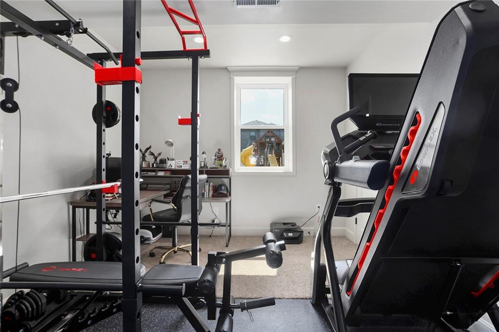 This Modern Farmhouse Was Built to Be Lived In—Not Just Looked At. This three-year-old modern farmhouse proves that great design should work as beautifully as it looks. From the moment you step inside, the open floor plan and abundant natural light do what good architecture always does: they make you feel at home. The kitchen is the command center—generous prep space, two pantries, and a layout that supports real cooking, real entertaining, and real life. Nearby, a thoughtfully designed drop zone keeps daily chaos organized without effort. Upstairs, the primary suite offers the kind of privacy and comfort most people don’t realize they want until they have it: an oversized walk-in closet, a deep soaker tub, and a spacious walk-in shower designed for unhurried mornings. Three additional large bedrooms provide flexibility for family, guests, or work-from-home needs, while the upstairs laundry is exactly where it should be—close, convenient, and practical. The lower level extends the home’s usefulness with a fifth bedroom suite or private office and a custom media room that turns ordinary evenings into something worth staying in for. Outside, the home continues to deliver: a covered deck for year-round enjoyment, irrigation system, play gym, and a new PVC privacy fence that offers both security and peace of mind. This is not a house designed to impress for five minutes. It’s a home designed to satisfy for years.