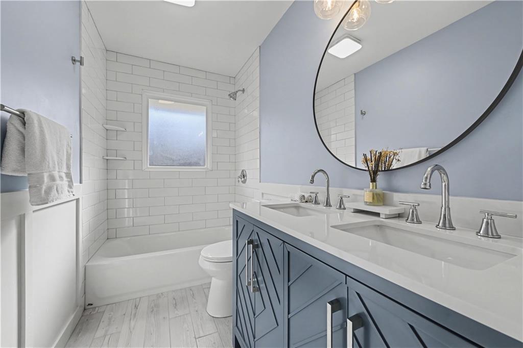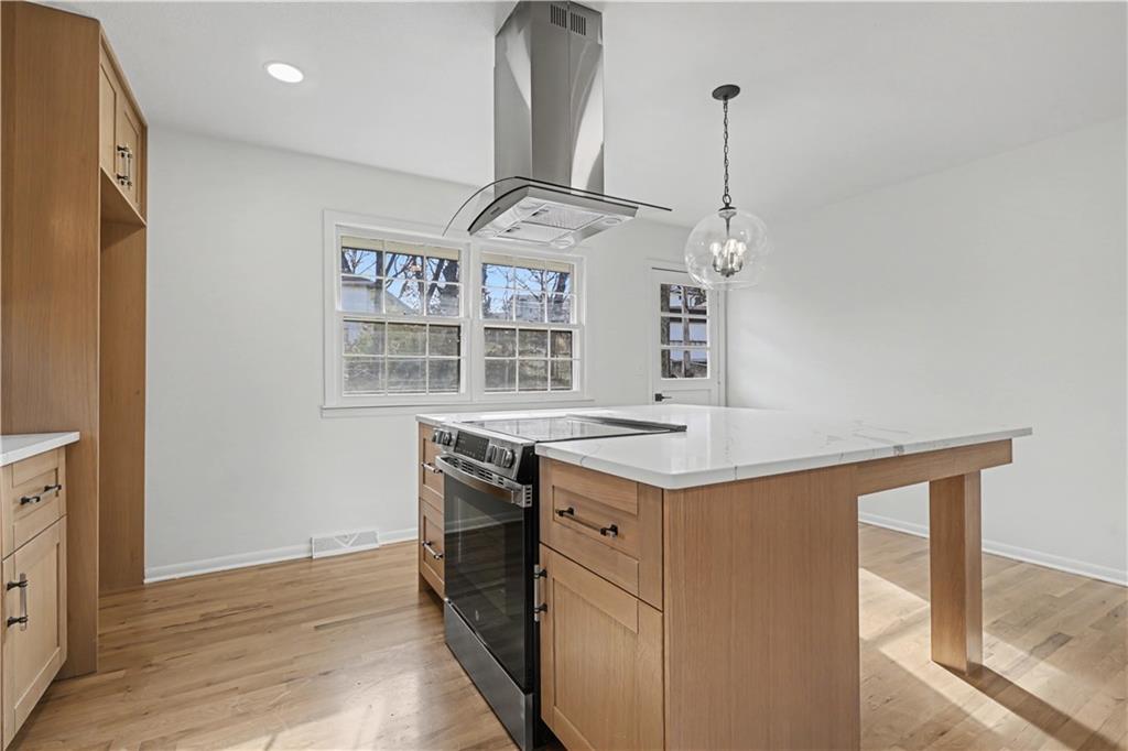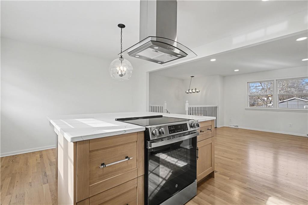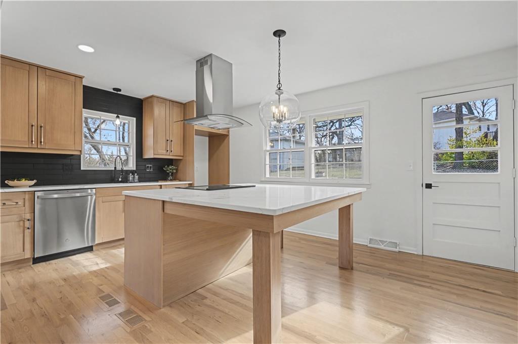 CHARMING, TOP-TO-BOTTOM REMODEL IN THE HEART OF SHAWNEE! Tucked away on a private, off-street lot, this beautifully updated home checks every box with today’s most-wanted finishes and an open, inviting layout. Gorgeous hardwood floors lead you into a completely new kitchen featuring stylish wood cabinetry, stainless steel appliances, a statement hood, and a huge quartz island that seats five—perfect for everyday living and entertaining. The kitchen opens seamlessly to the living room for a modern, connected feel. The primary suite shines with a brand-new spa-like bath, showcasing a walk-in shower and on-trend finishes. The secondary bath is fully remodeled with double vanities, wainscoting accents, and a classic subway-tiled shower. Two additional bedrooms offer new carpet and ceiling fans. Convenient first-floor laundry adds to the functionality. In the lower level enjoy a cozy brick fireplace, tile flooring, and a half bath—ideal for a second living space. The oversized two-car garage includes a utility sink for added convenience. Step outside to a spacious deck overlooking the fenced yard—great for entertaining and pets alike. Quiet, private setting with added security, yet close to highways, shopping, and schools. This is the kind of move-in-ready home buyers wait for—don’t miss it.